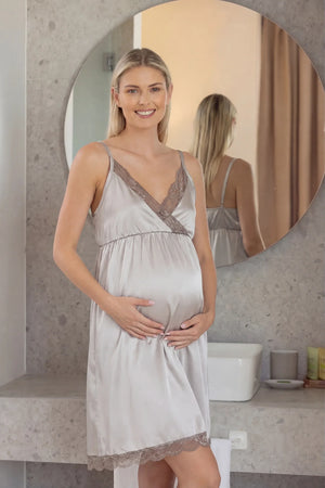 Σατέν νυχτικό εγκυμοσύνης και θηλασμού με δαντέλα
