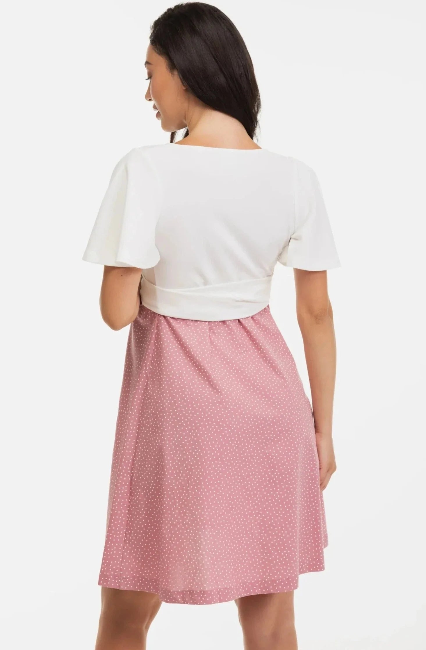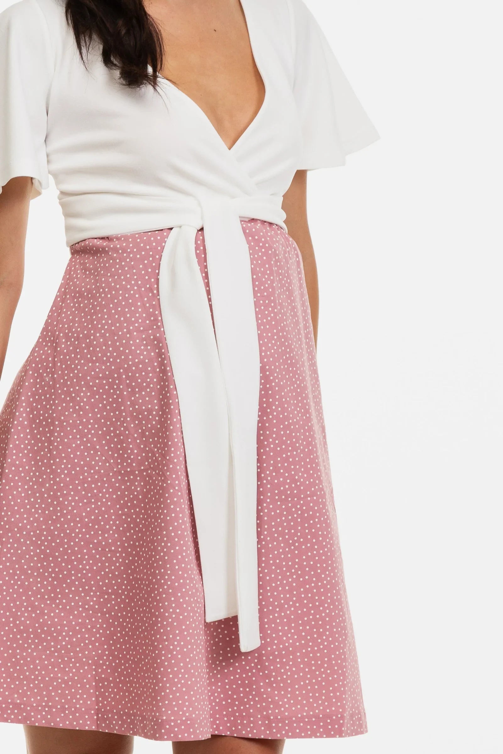 - Η φούστα του φορέματος είναι κατασκευασμένη από βαμβακερό ύφασμα με πουά σχέδιο