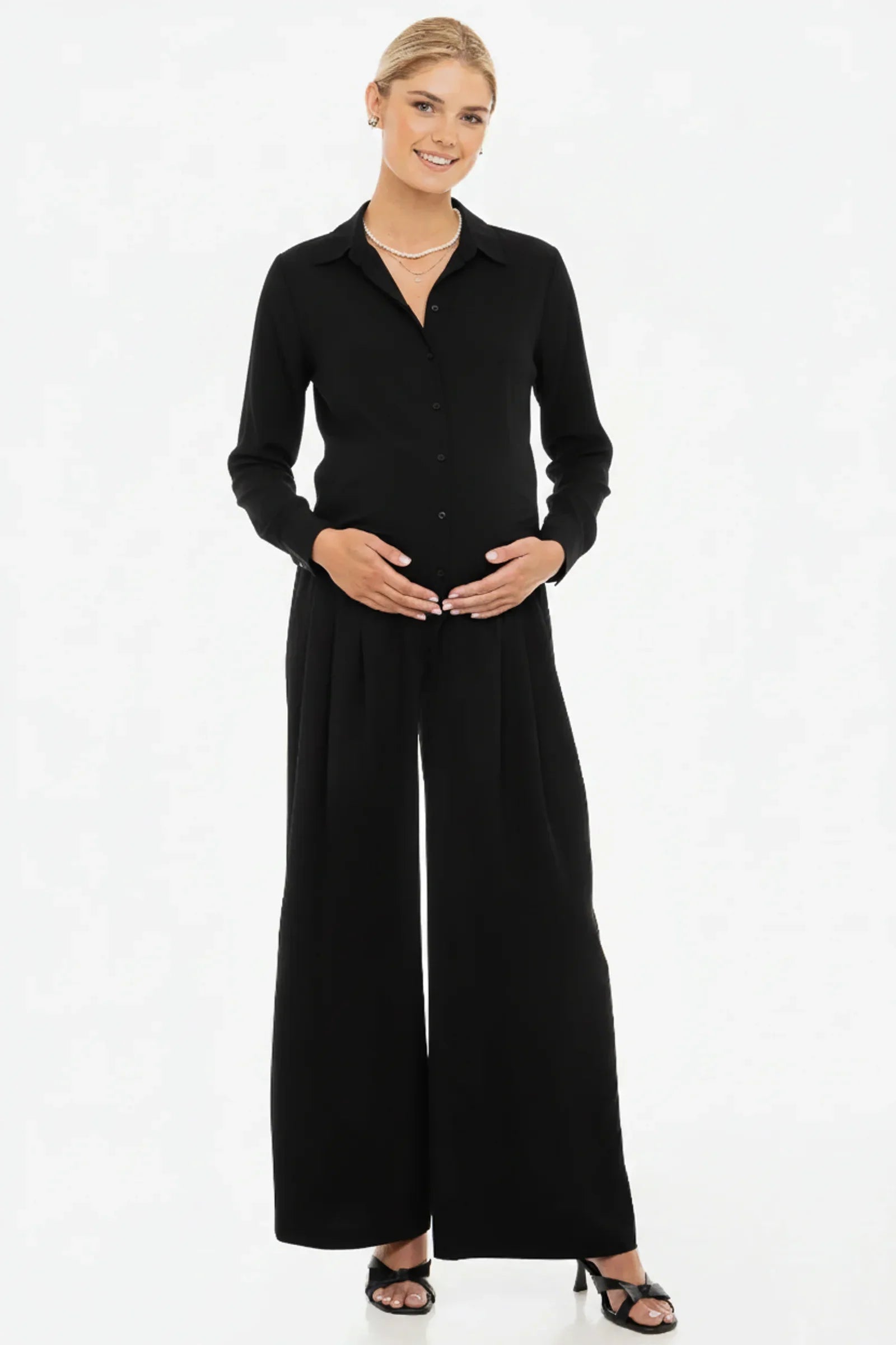 Κομψό μαύρο παντελόνι εγκυμοσύνης με πιέτες