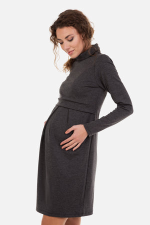 Φόρεμα εγκυμοσύνης και θηλασμού με γιακά – γκρι