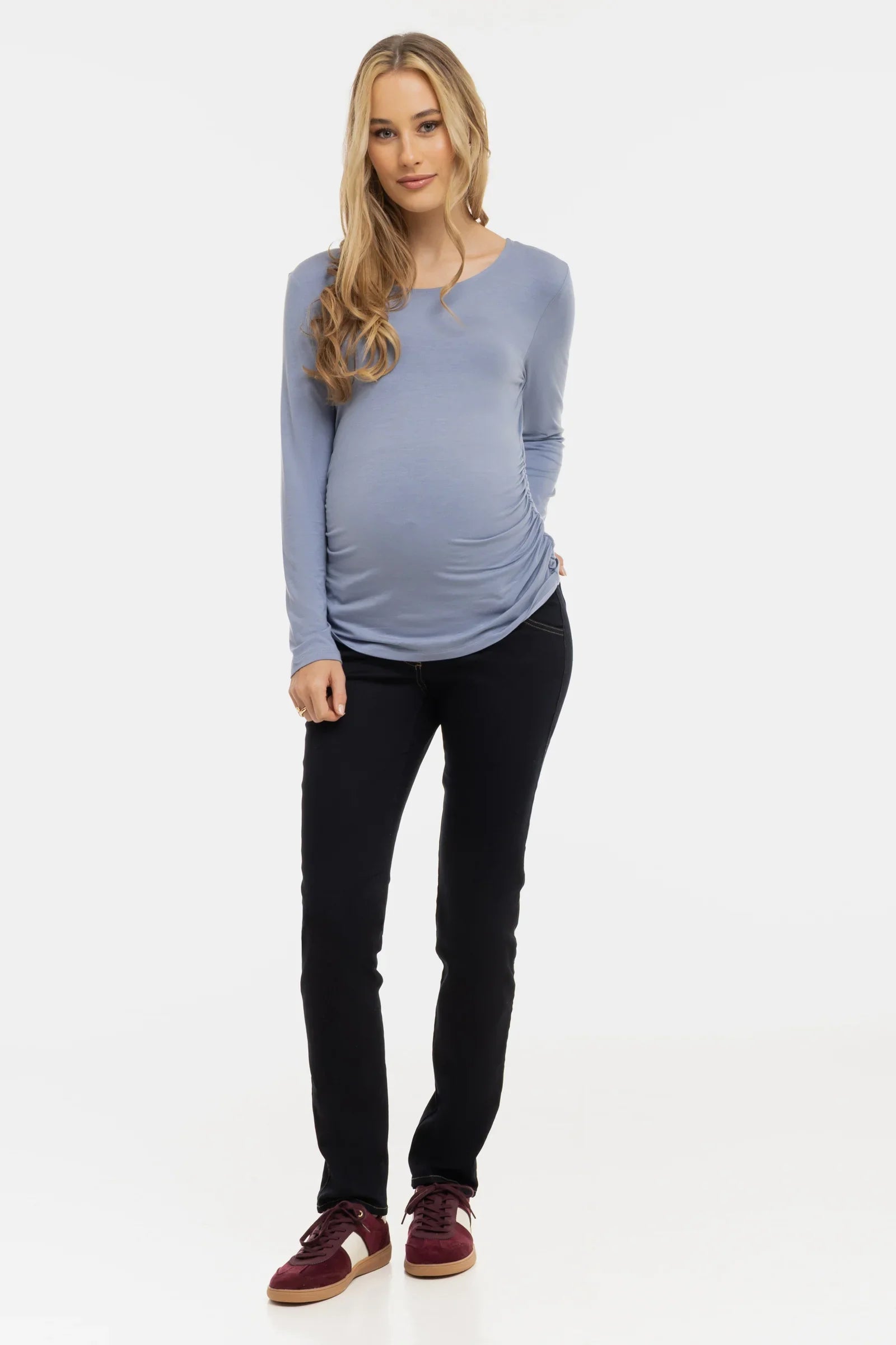 Απαλό μπλουζά εγκυμοσύνης με σούρες από modal – μπλε