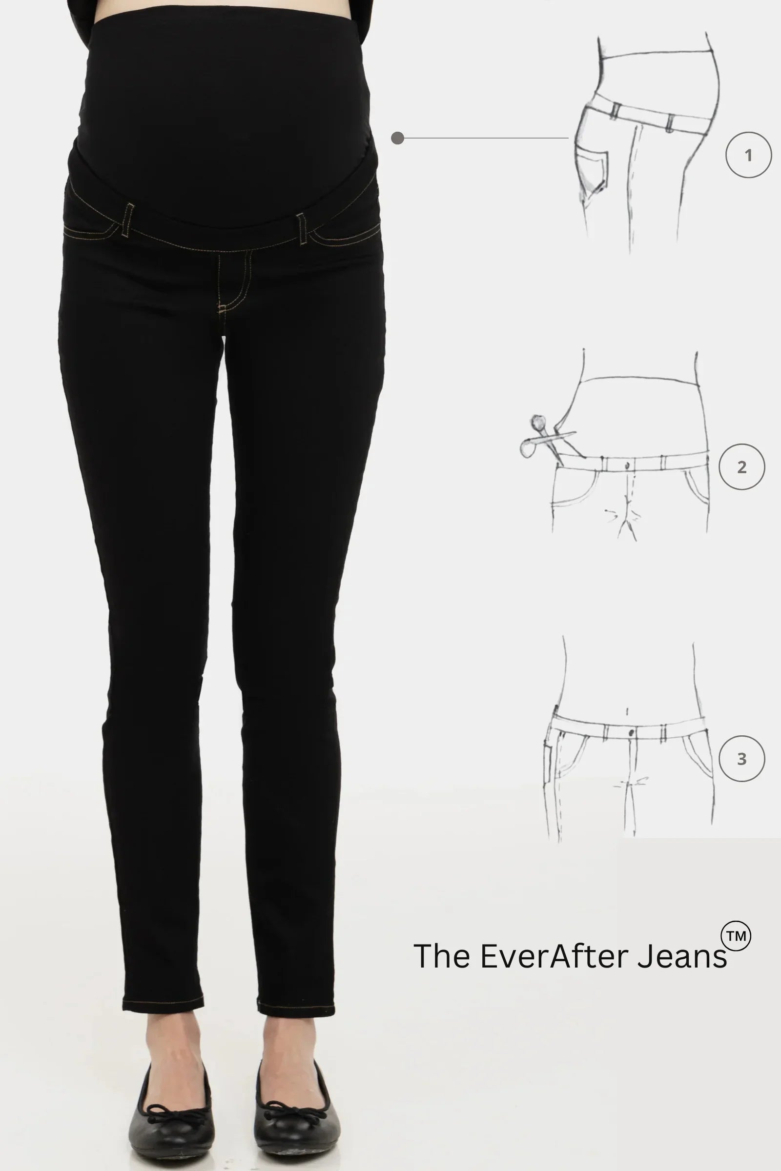- The EverAfter Jeans είναι ένα τζιν εγκυμοσύνης 2 σε 1. Μετά την εγκυμοσύνη, όταν δε χρειάζεσαι πλέον το βαμβακερό πάνελ, μπορείς να το αφαιρέσεις! Στο εσωτερικό της ζώνης υπάρχει μια κίτρινη ραφή που αφαιρείται εύκολα. Μετά την αφαίρεση του πάνελ, μπορείς να ρυθμίσεις το πλάτος με το λάστιχο με θηλιές από την εσωτερική πλευρά