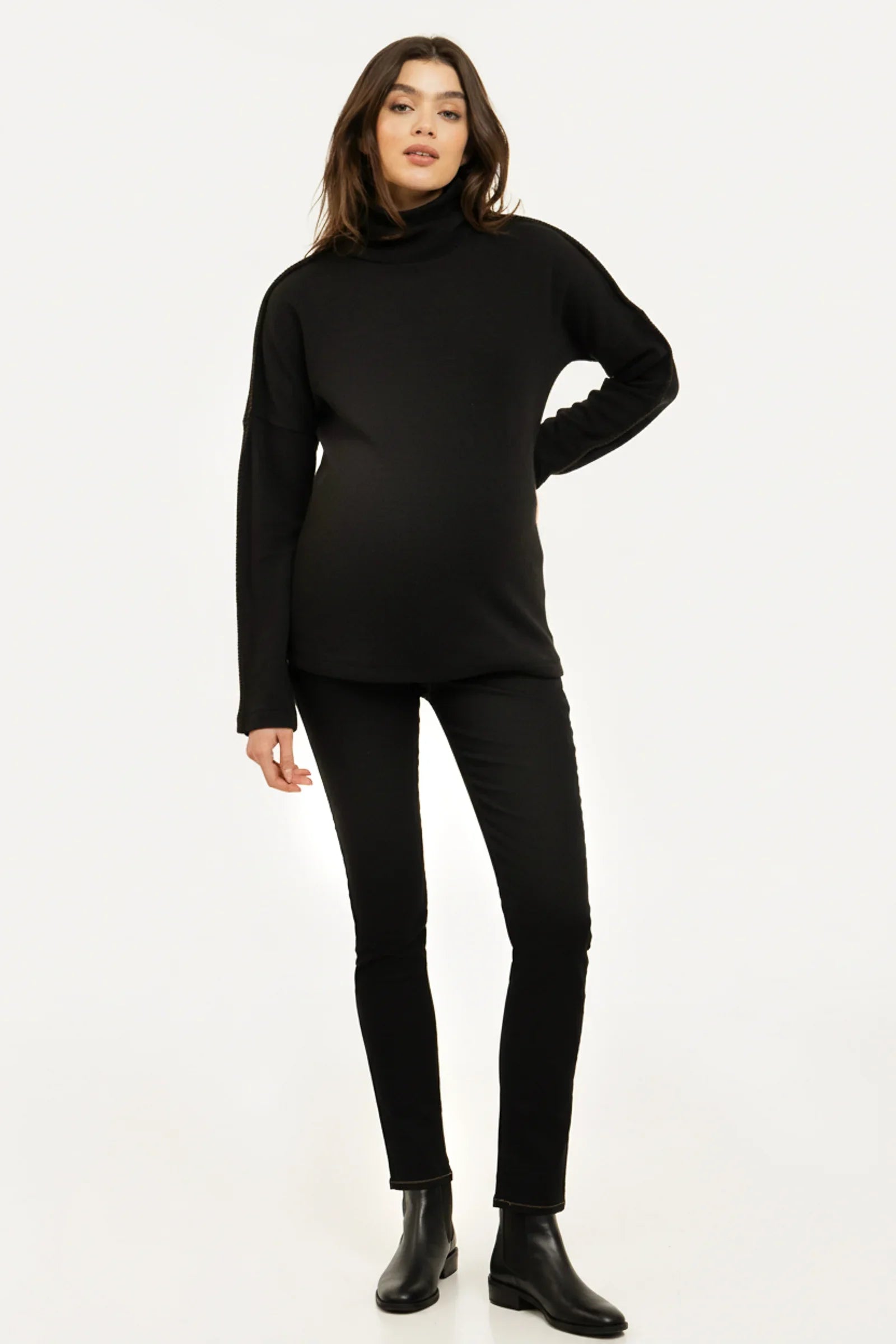 Μαύρο πλεκτό πουλόβερ εγκυμοσύνης με διακοσμητικές ραφές