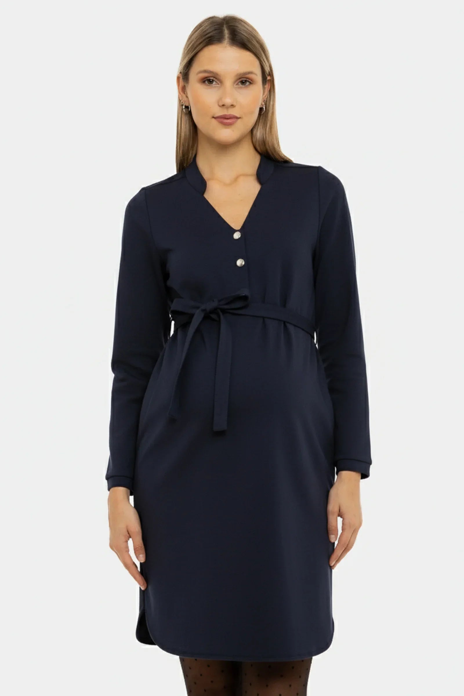 Ελαστικό σκούρο μπλε φόρεμα εγκυμοσύνης και θηλασμού