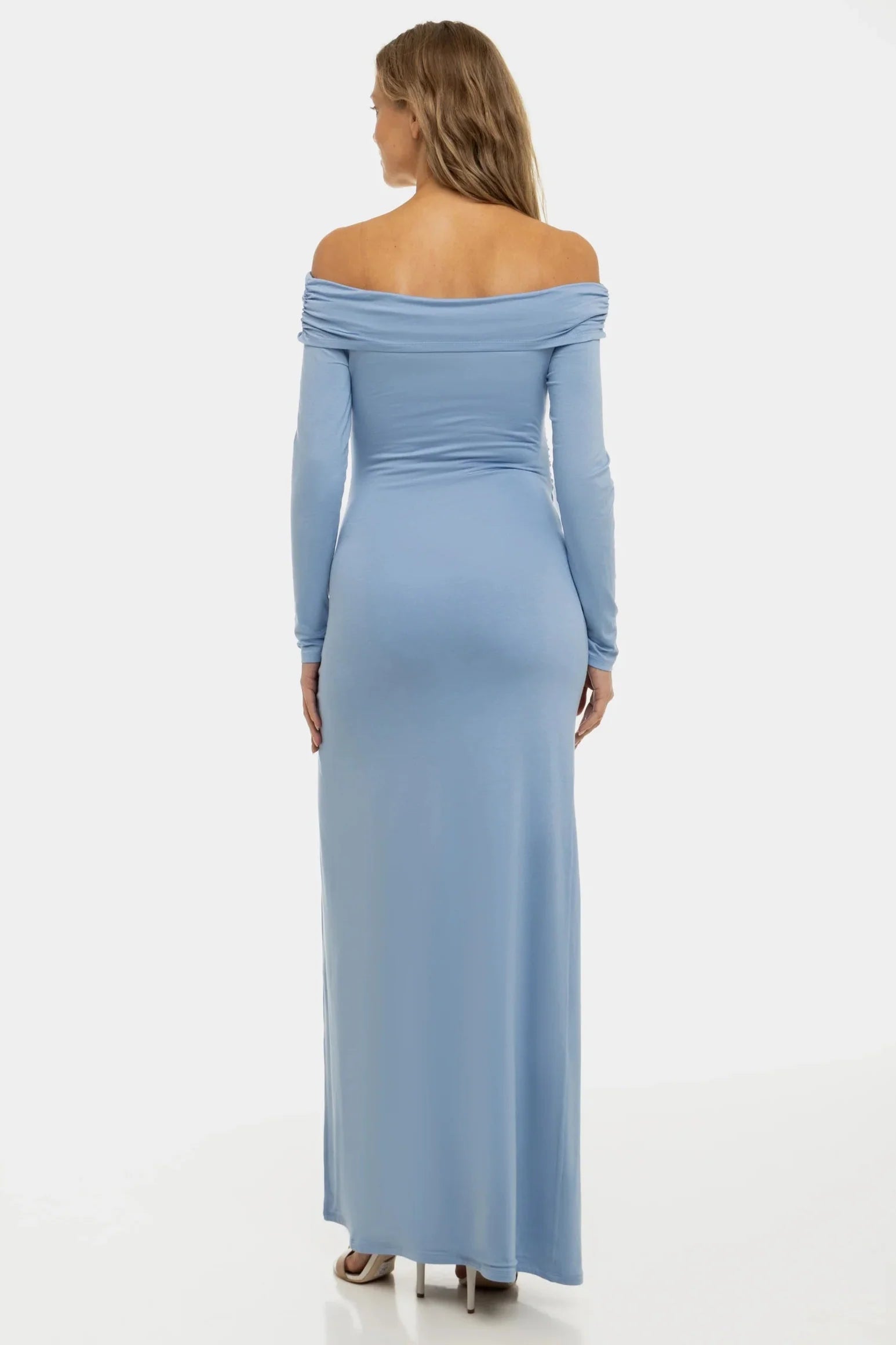 - Φόρεμα εγκυμοσύνης σε υπέροχα ντραπέ ύφασμα βισκόζης σε ανοιχτό μπλε χρώμα