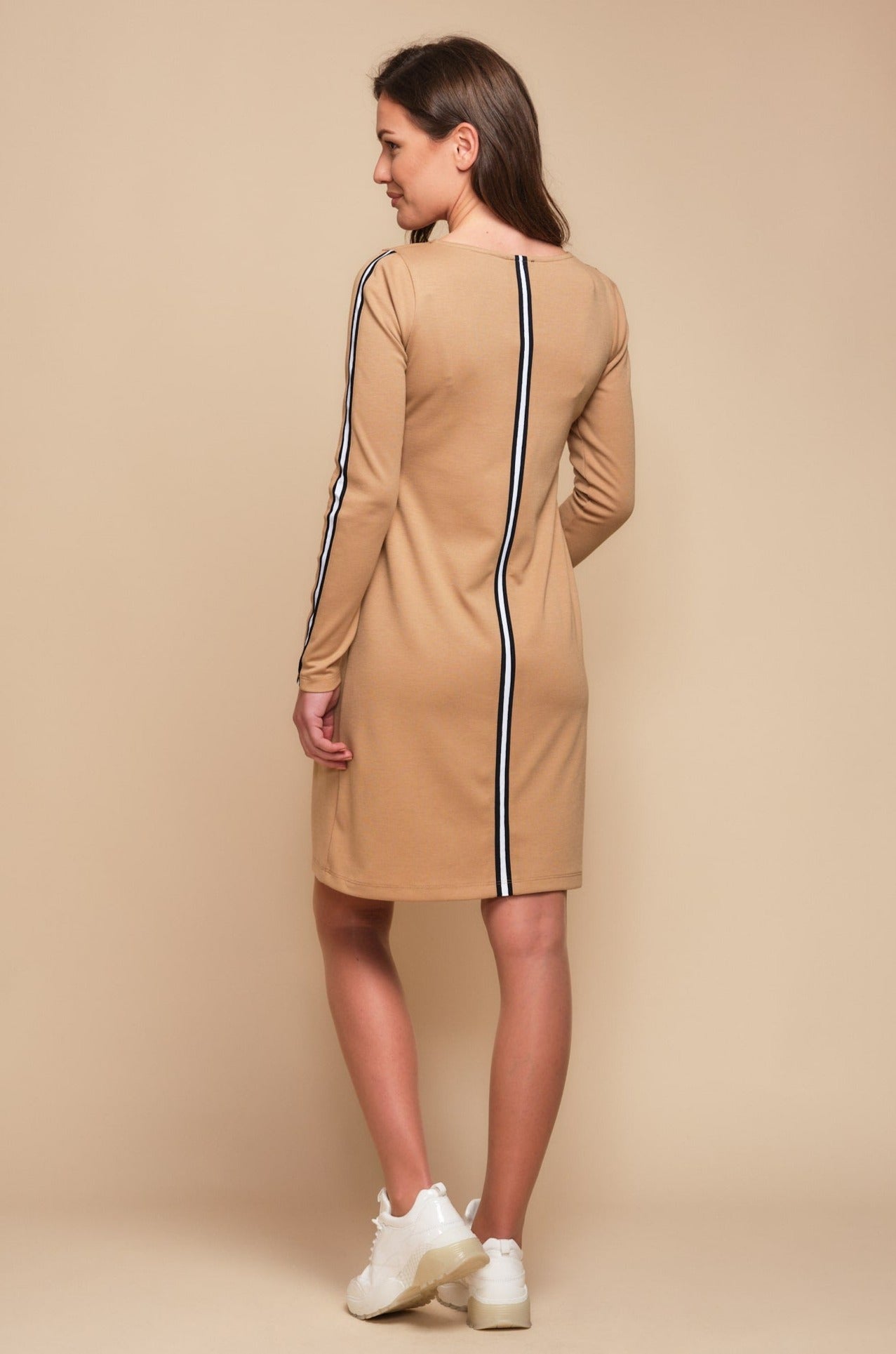 Κομψό φόρεμα εγκυμοσύνης και θηλασμού με πλαϊνές λωρίδες