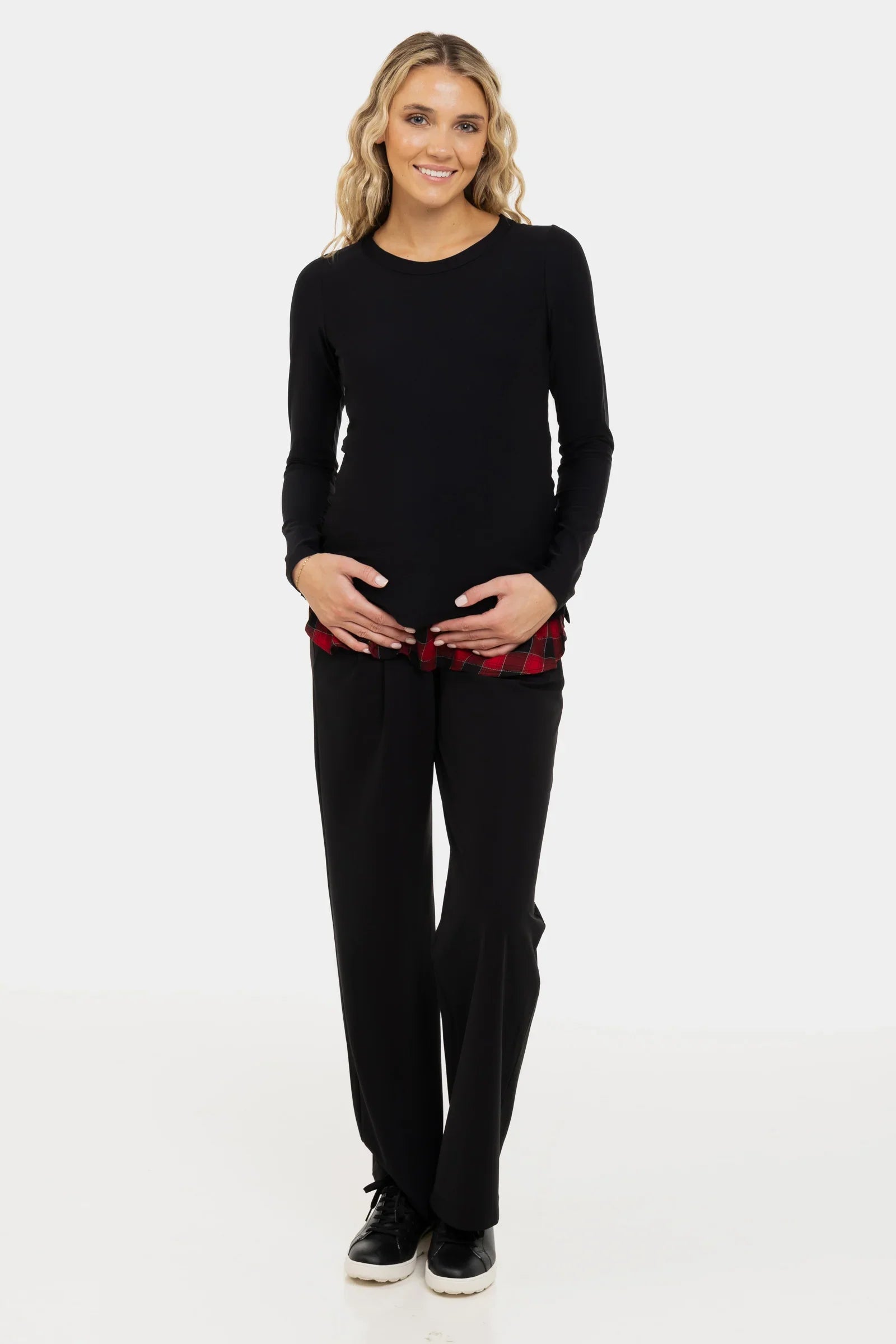 Μαύρη μπλούζα εγκυμοσύνης και θηλασμού με καρό στοιχεία