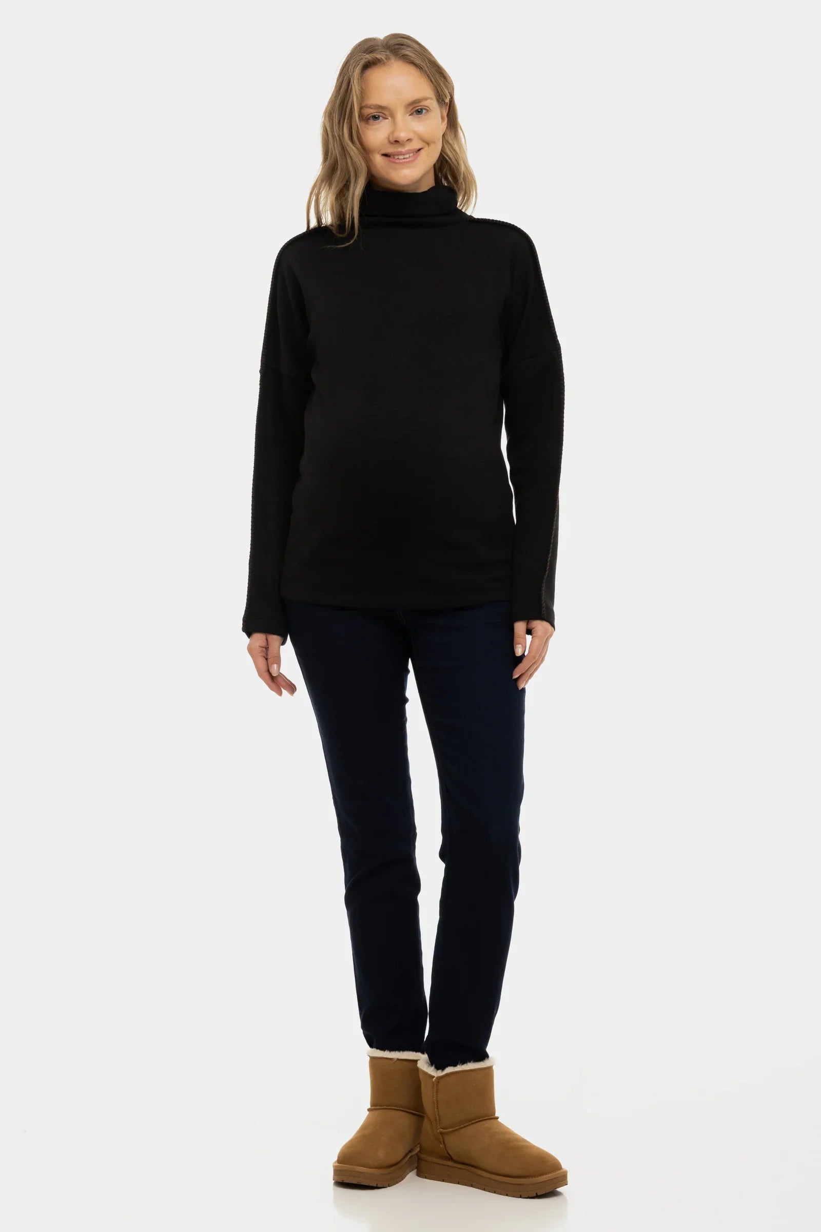 - Πουλόβερ εγκυμοσύνης από απαλό ζεστό ύφασμα σε μαύρο χρώμα