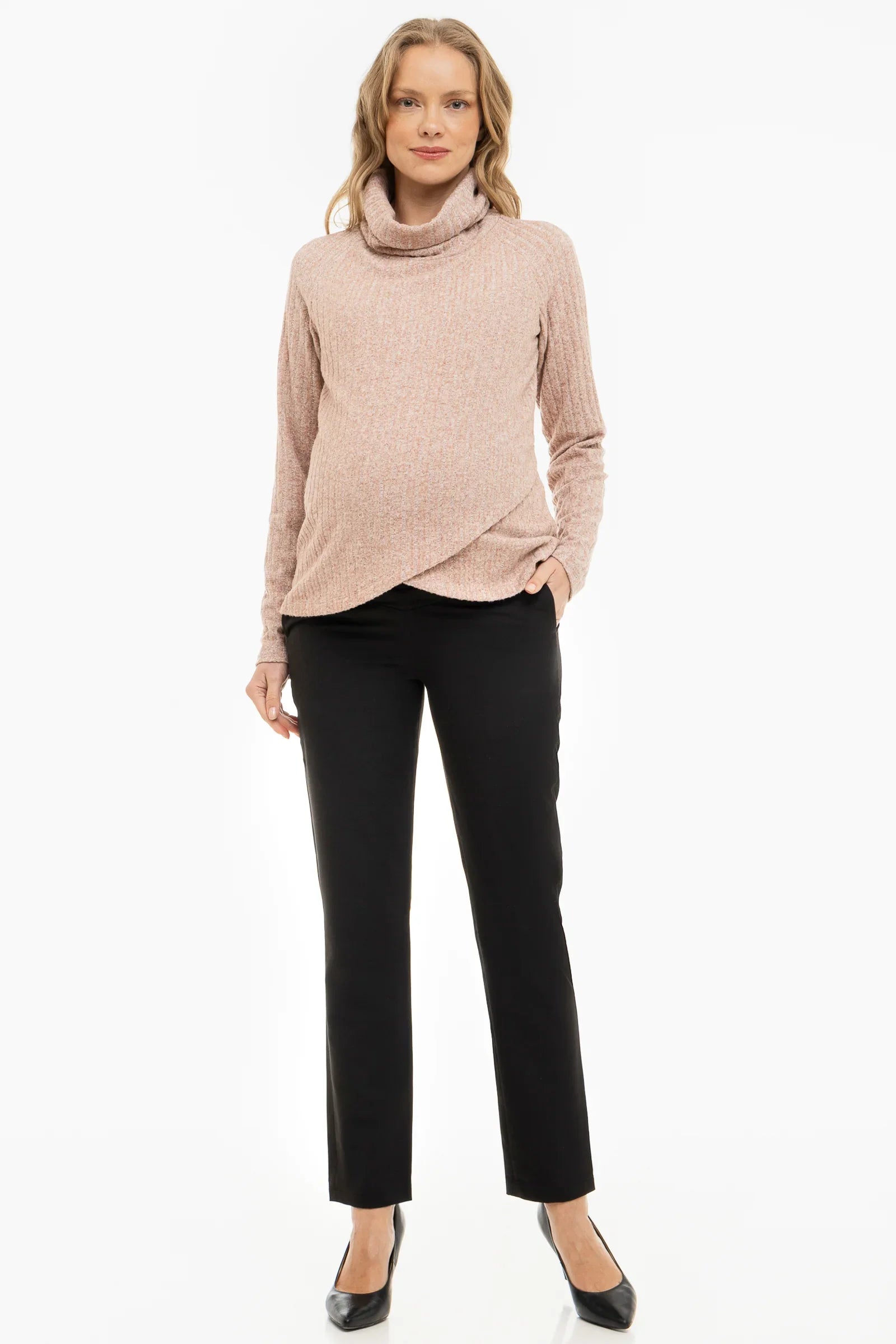 Μπεζ πλεκτό πουλόβερ εγκυμοσύνης και θηλασμού
