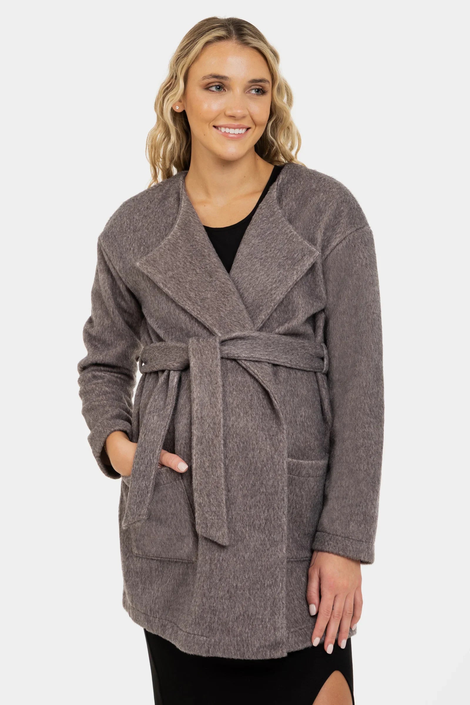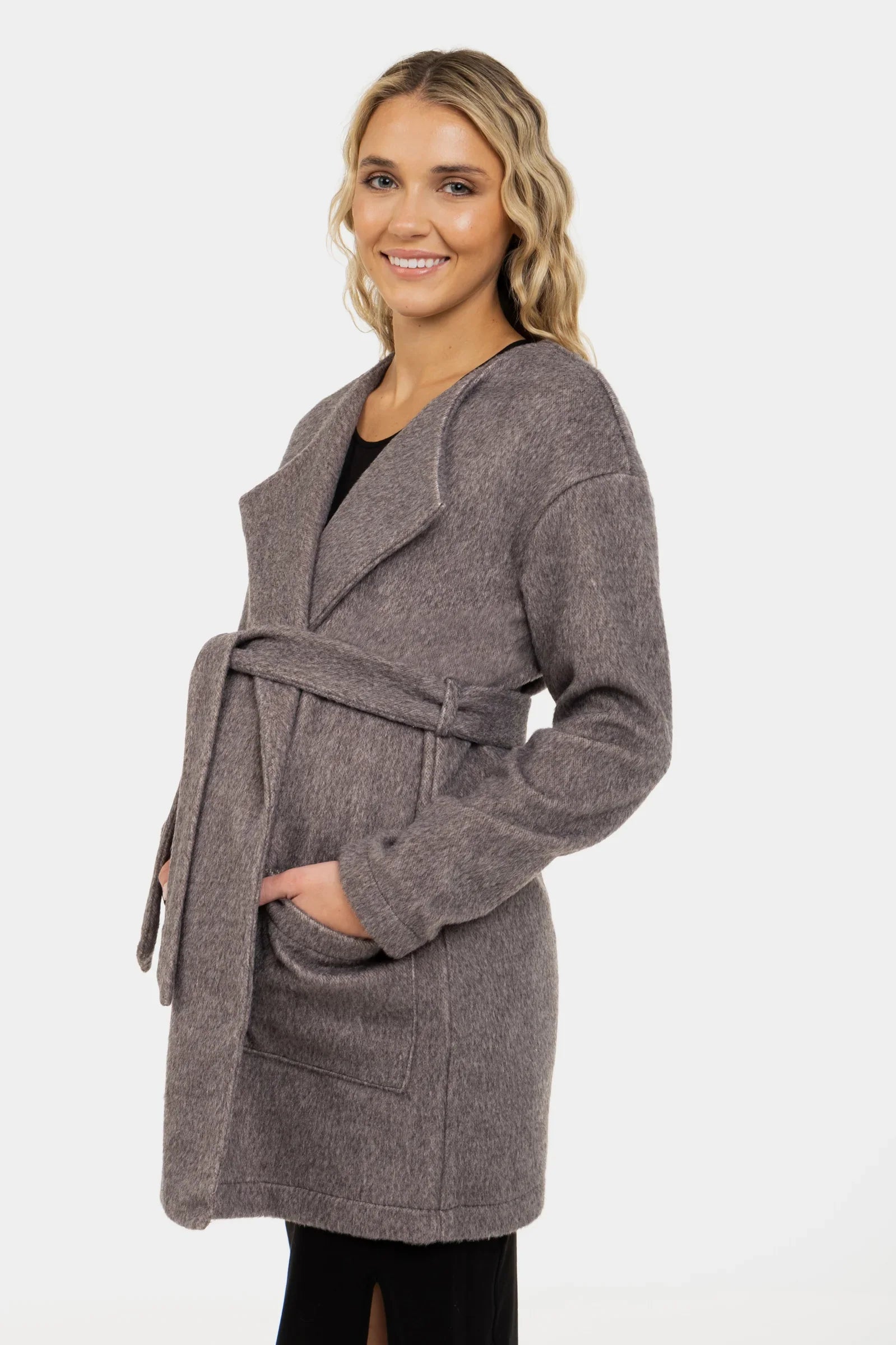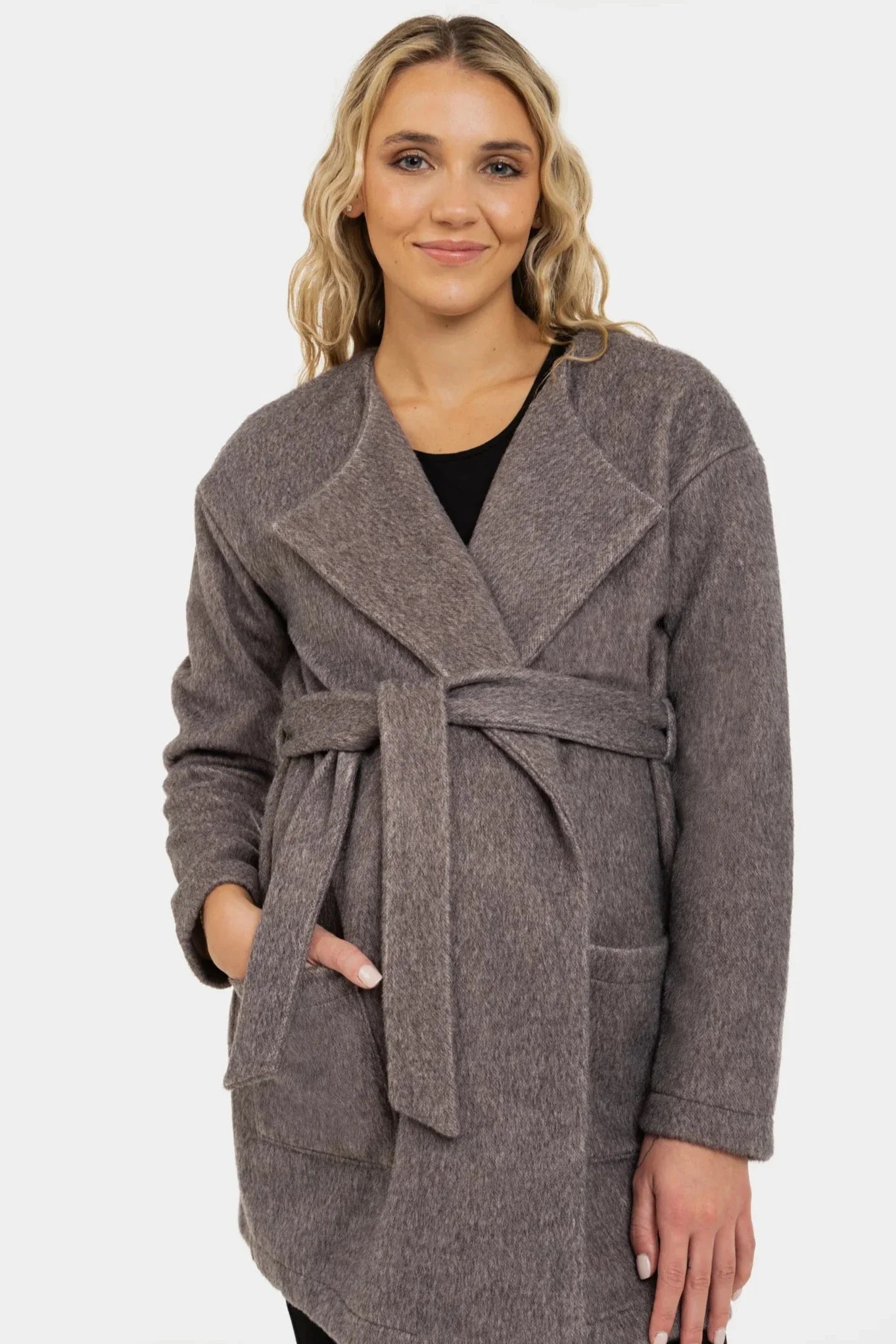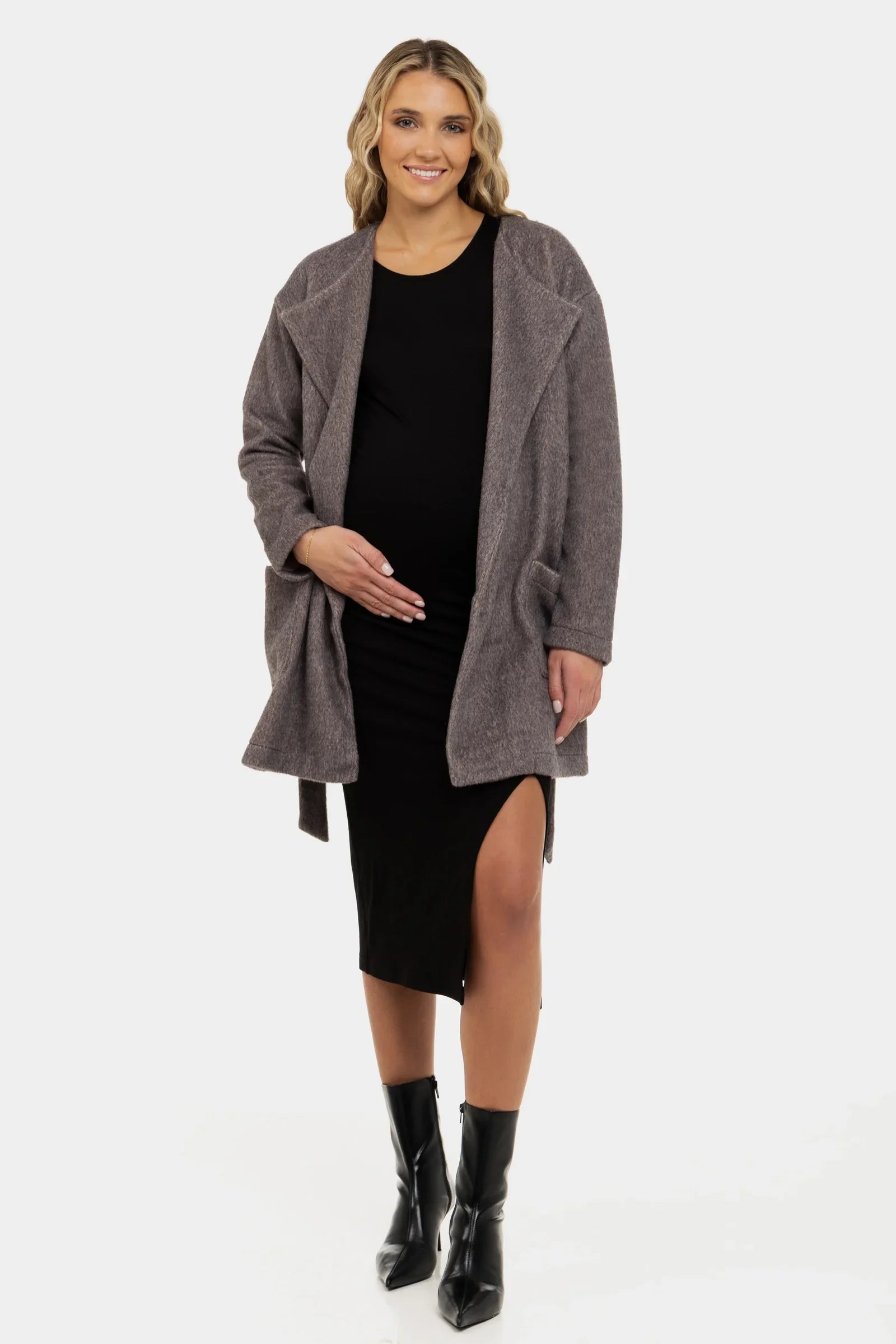 - Πλεκτή ζακέτα εγκυμοσύνης από ύφασμα με πλεκτό εσωτερικό μέρος και εξωτερικό από οικολογικά μαλλιά