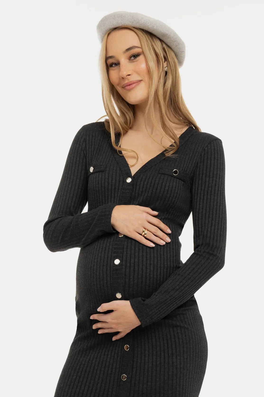 - Φόρεμα εγκυμοσύνης από μαλακό πλεκτό ύφασμα – ανθρακί