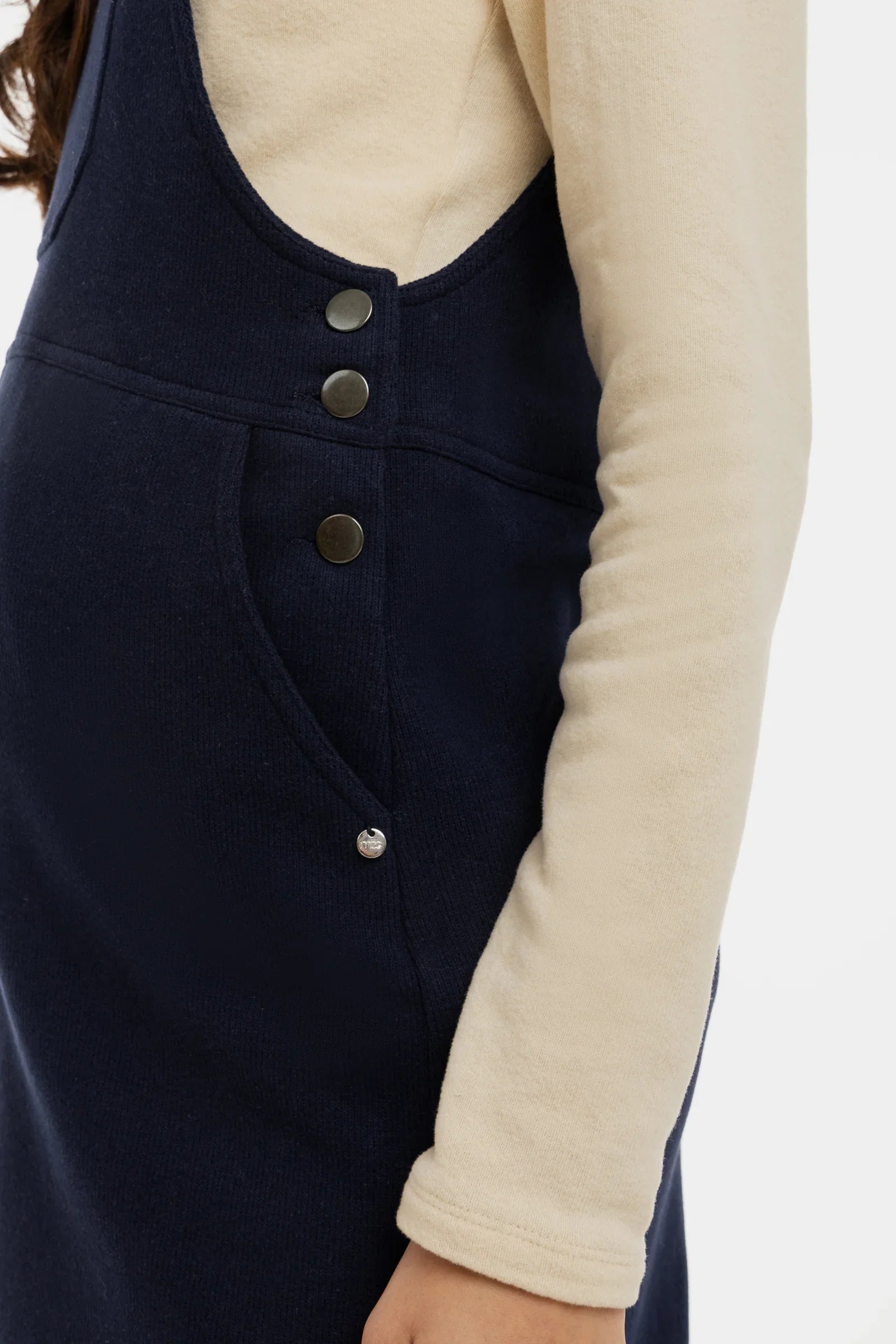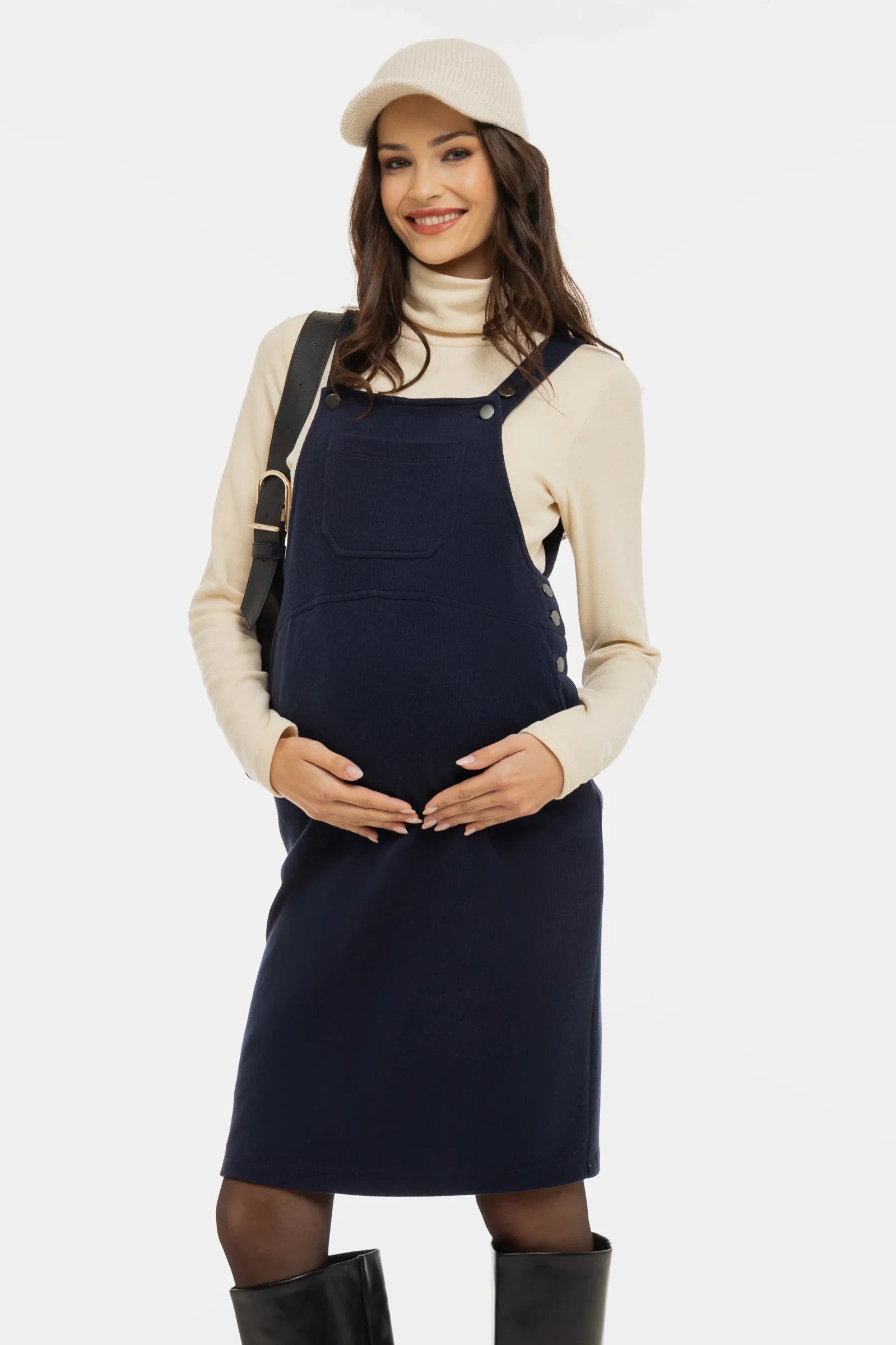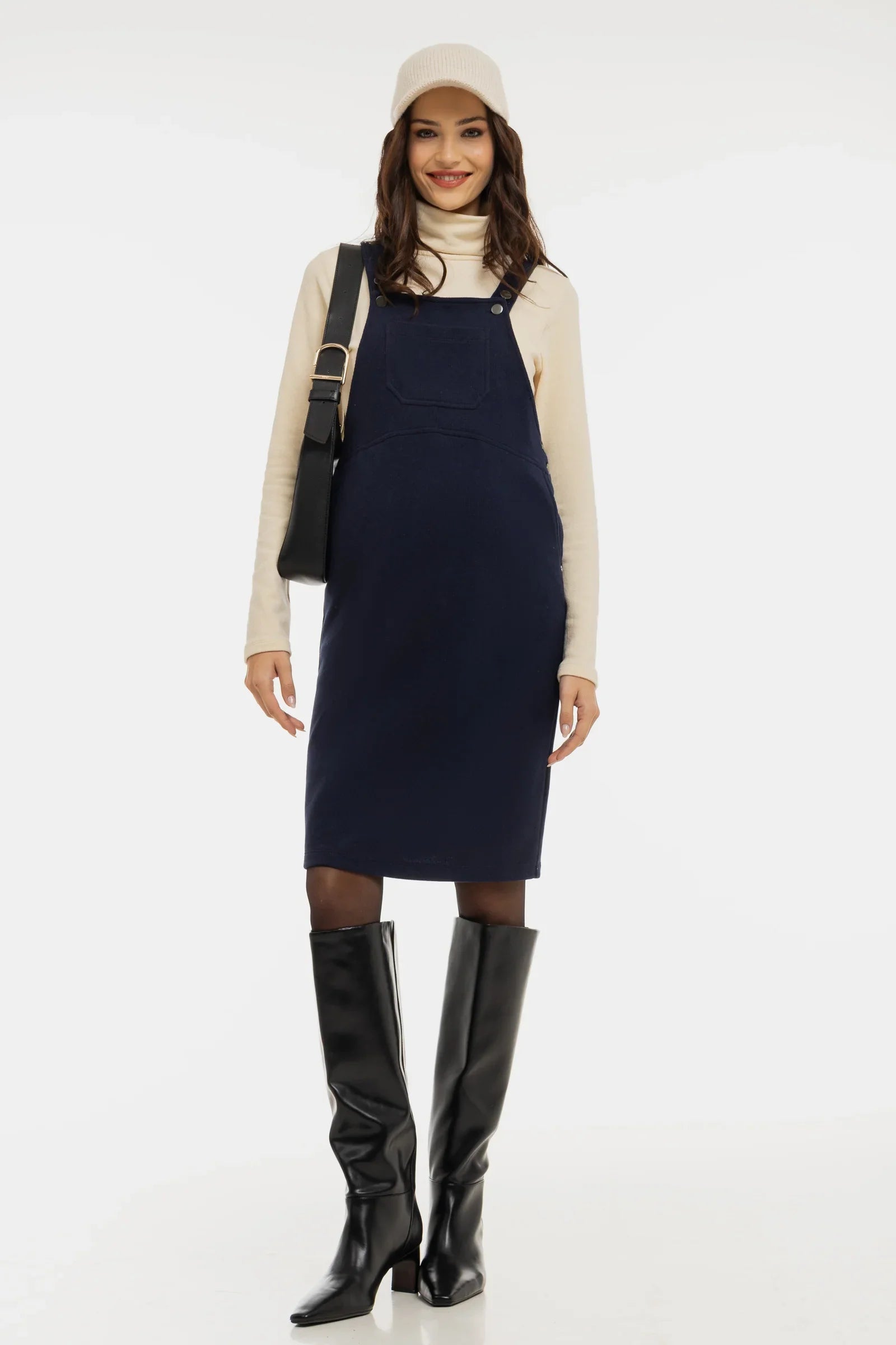 - Πλεκτό φόρεμα σαλοπέτα εγκυμοσύνης σε σκούρο μπλε χρώμα, από ζεστή και ελαστική πλέξη