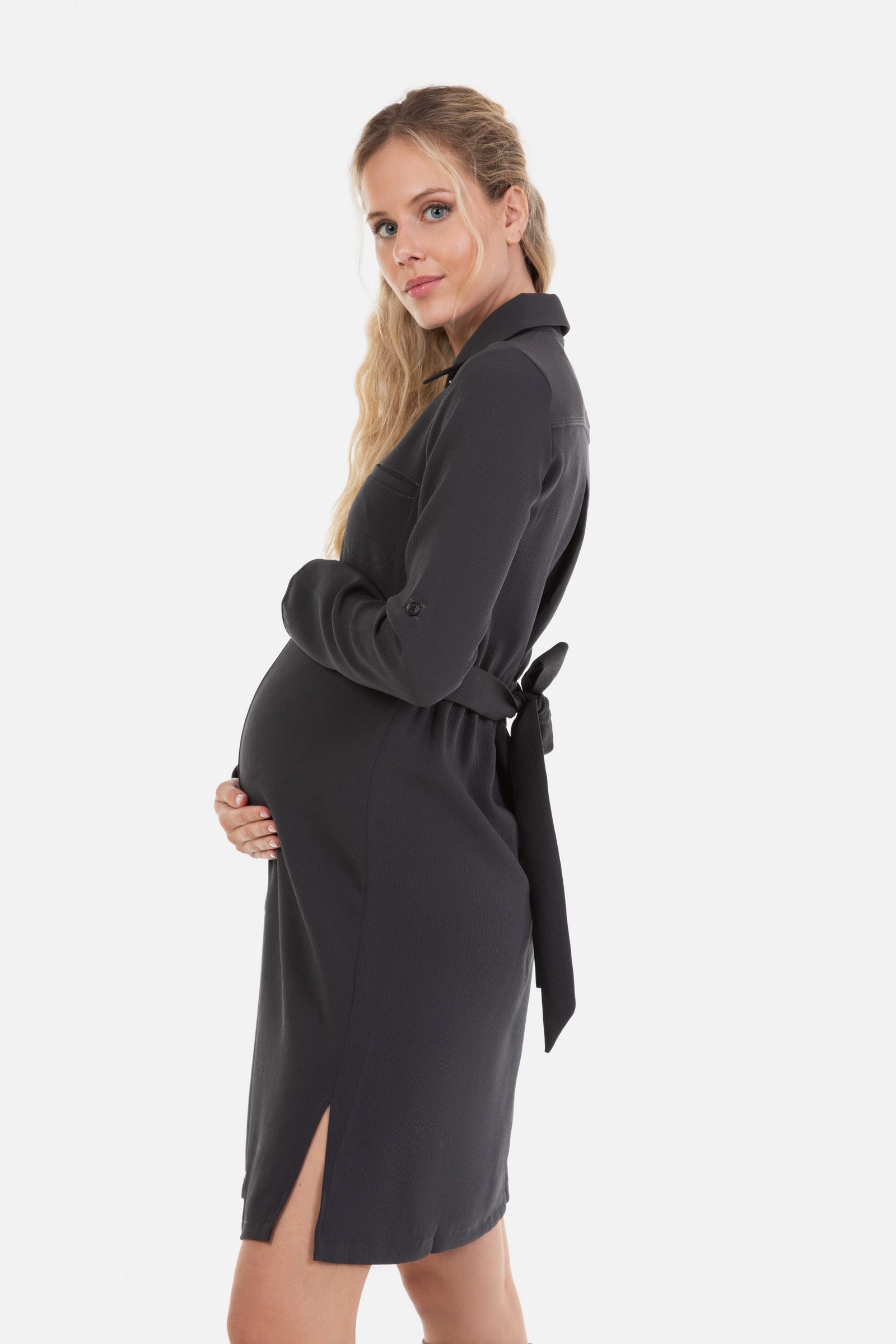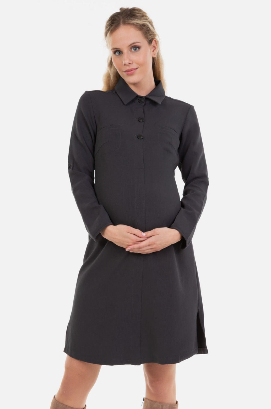 Πουκαμισ-οφόρεμα εγκυμοσύνης και θηλασμού από ύφασμα με υφή – γκρι