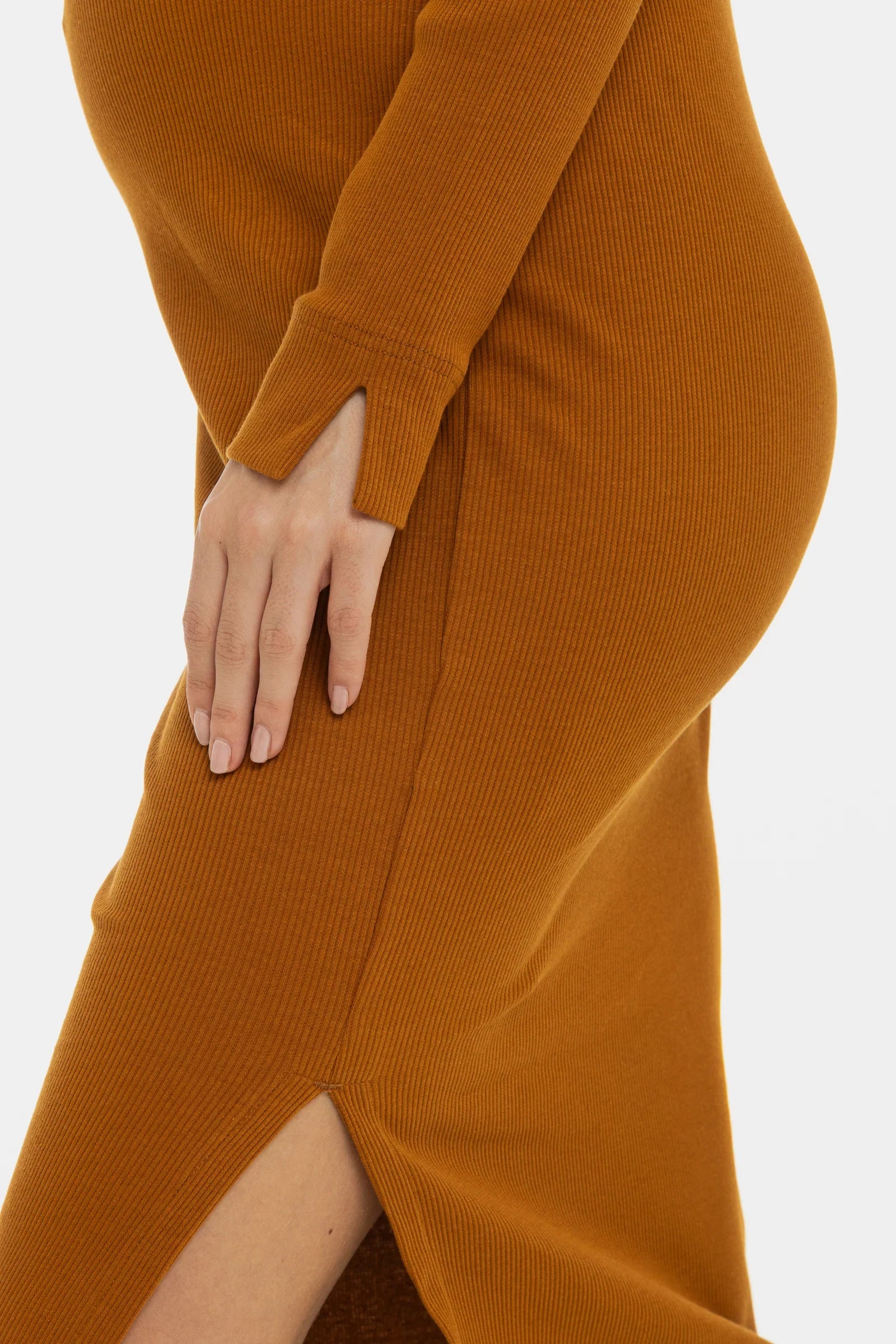 - Φόρεμα εγκυμοσύνης από ριπ βαμβακερή ελαστική ύφανση σε καραμέλα χρώμα