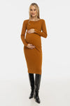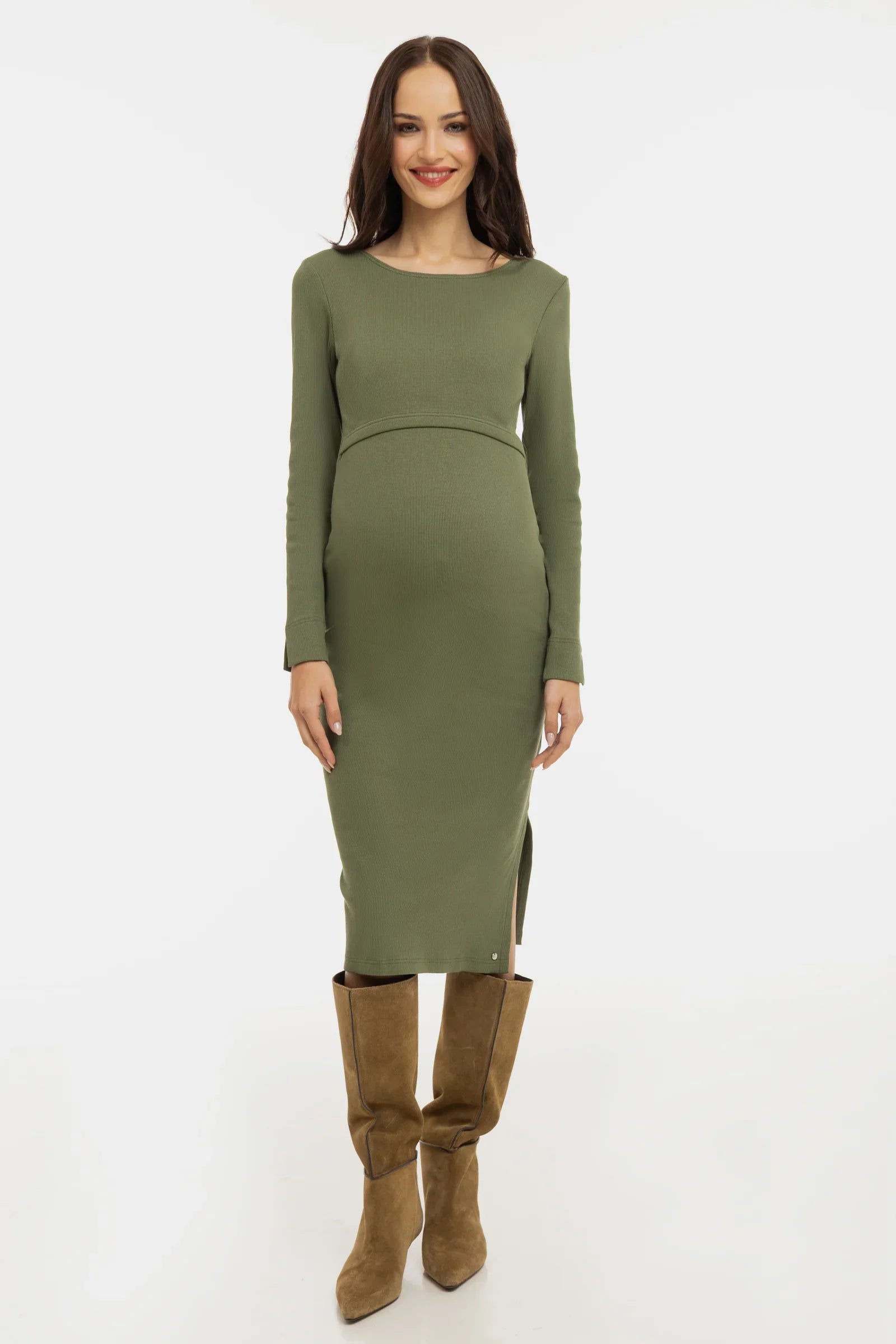 - Φόρεμα εγκυμοσύνης από ριπ βαμβακερή ελαστική ύφανση χρώμα ελιάς
