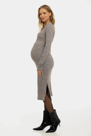 Πλεκτό φόρεμα σαλοπέτα εγκυμοσύνης και θηλασμού – γκρί