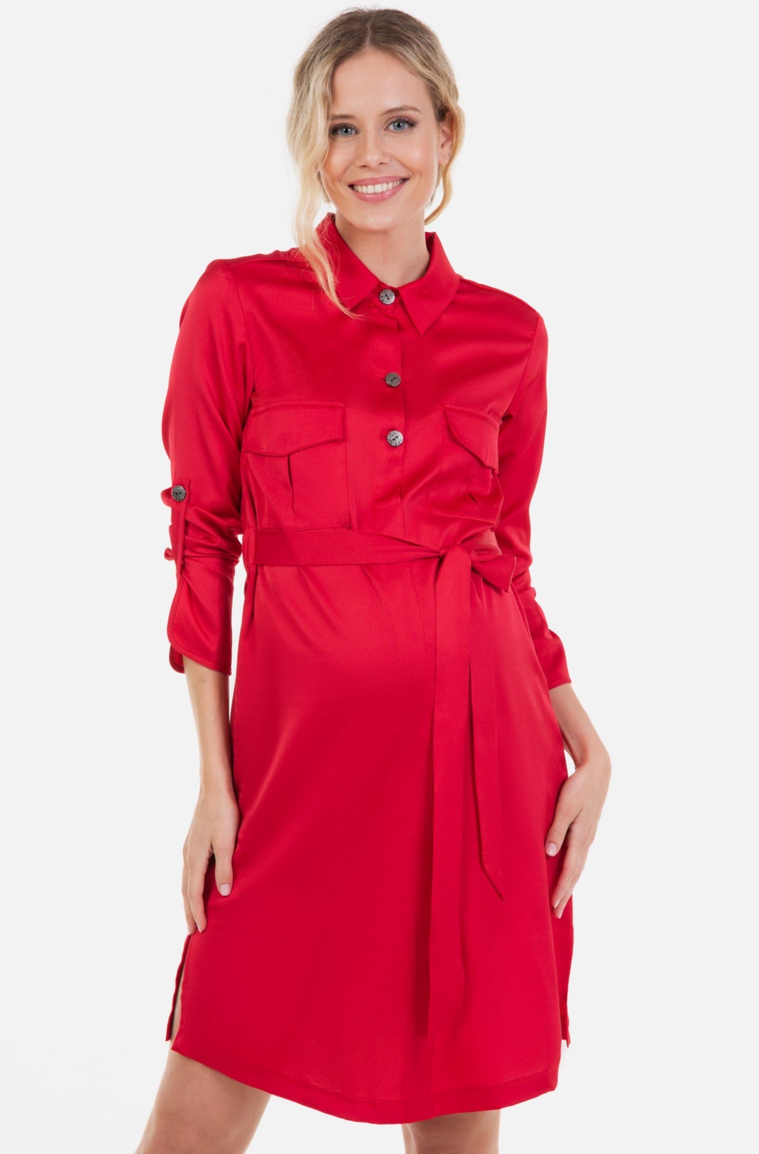 - Το φόρεμα είναι κατασκευασμένο από γυαλιστερό ύφασμα