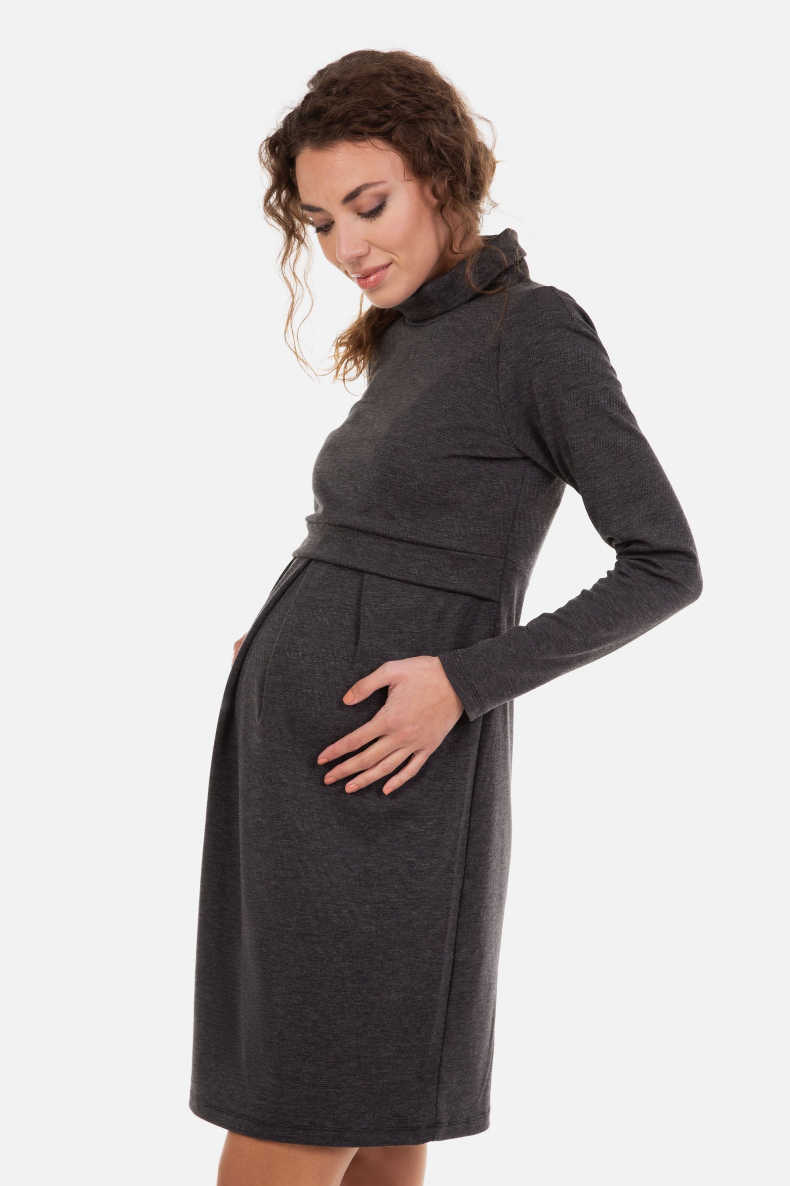 Φόρεμα εγκυμοσύνης και θηλασμού ζιβάγκο σε γκρι χρώμα