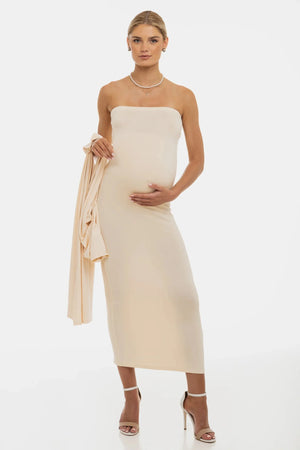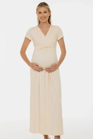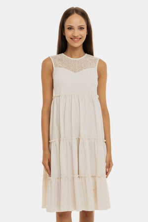 Εκρού φόρεμα εγκυμοσύνη και θηλασμού με δαντέλα