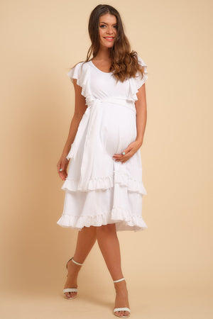Επίσημο δαντελένιο φόρεμα εγκυμοσύνης – λευκό