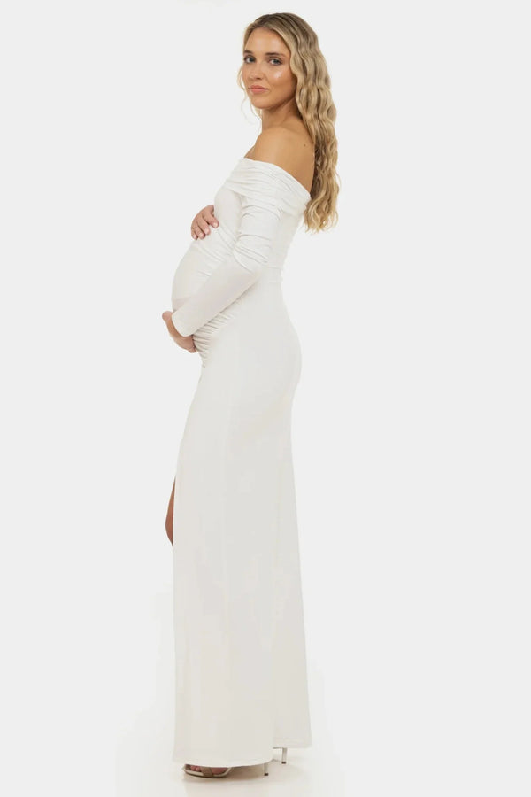 - Φόρεμα εγκυμοσύνης σε υπέροχα ντραπέ ύφασμα βισκόζης σε ελαφρύ εκρού
