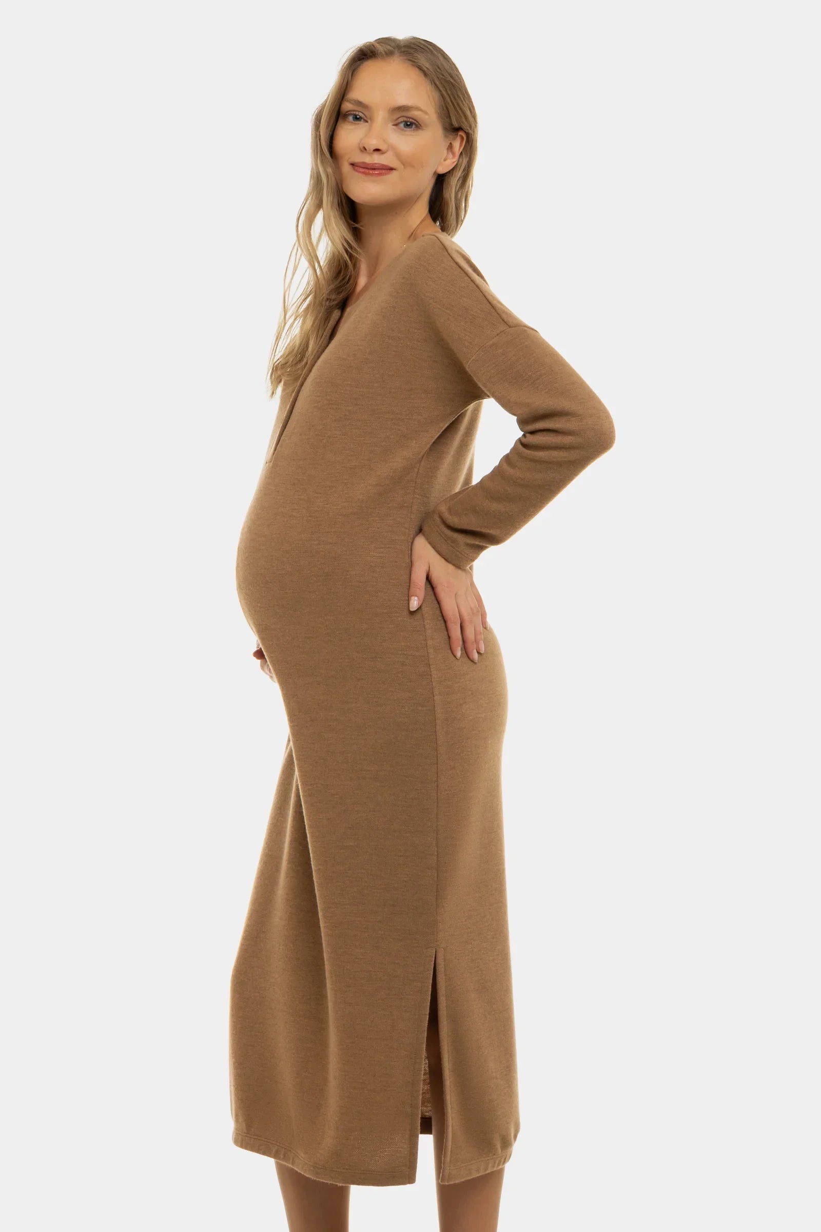 Μακριά πλεκτή φόρεμα εγκυμοσύνης και θηλασμού – καραμέλα