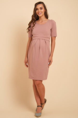 Αεράτο φόρεμα εγκυμοσύνης και θηλασμού σε χρώμα μόκα