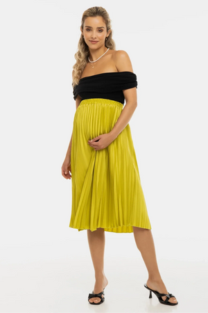 Σατέν πλισέ φούστα εγκυμοσύνης - λάιμ