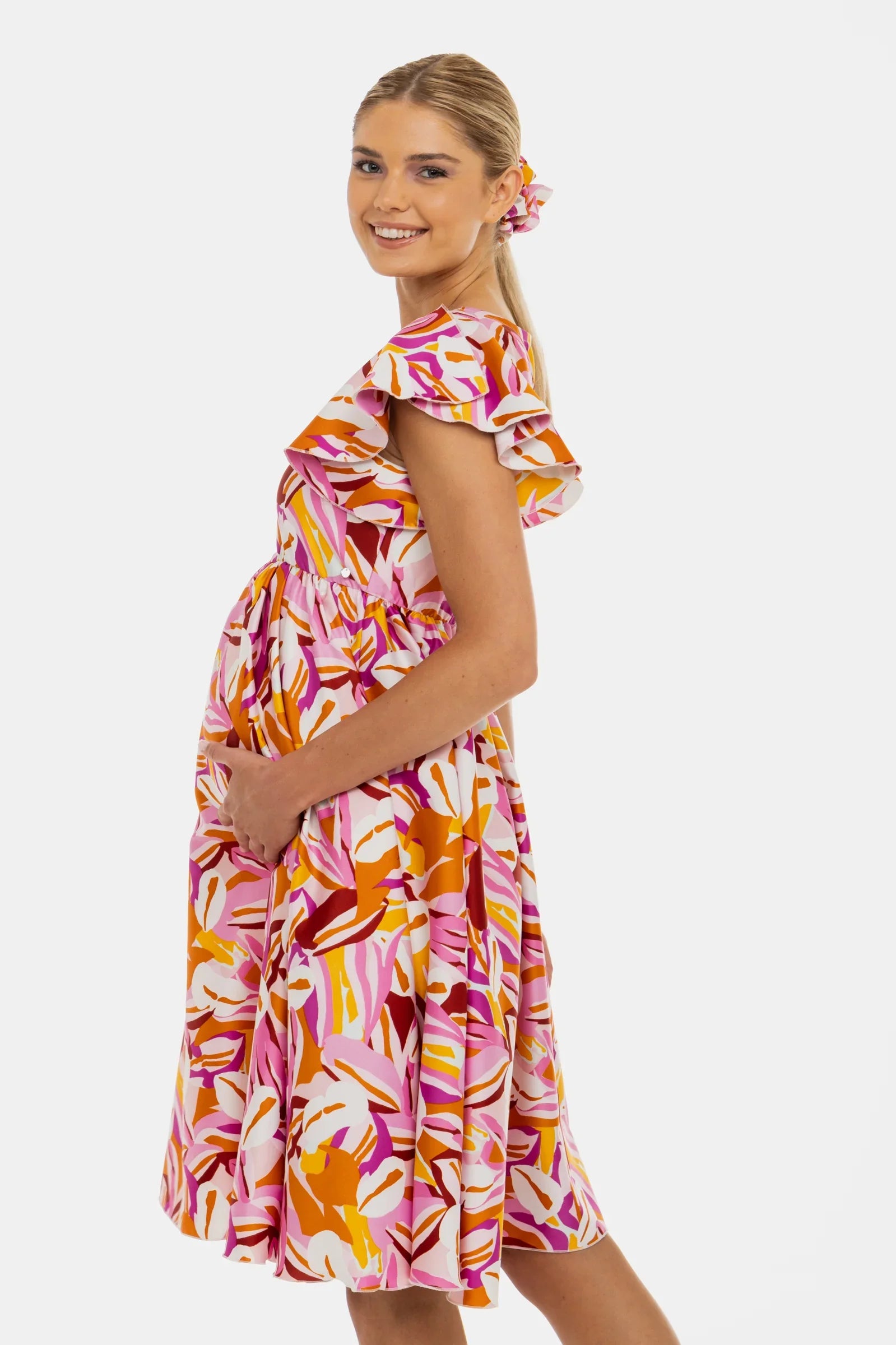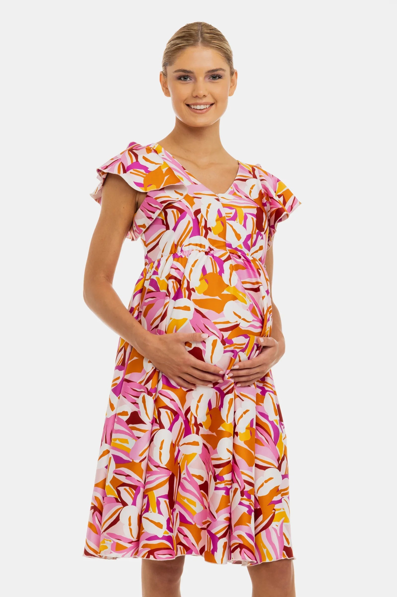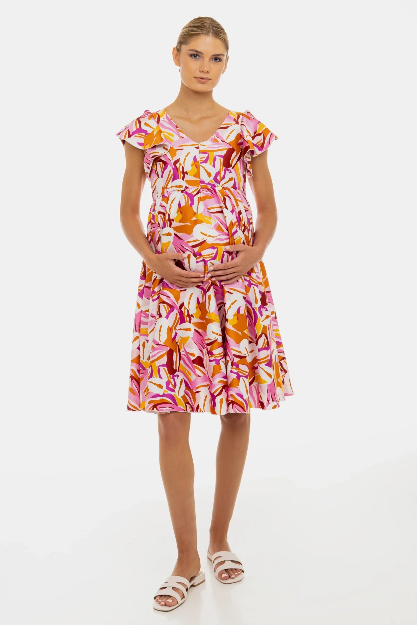 - Φόρεμα εγκυμοσύνης και θηλασμού από γυαλιστερό σατέν με σχέδιο