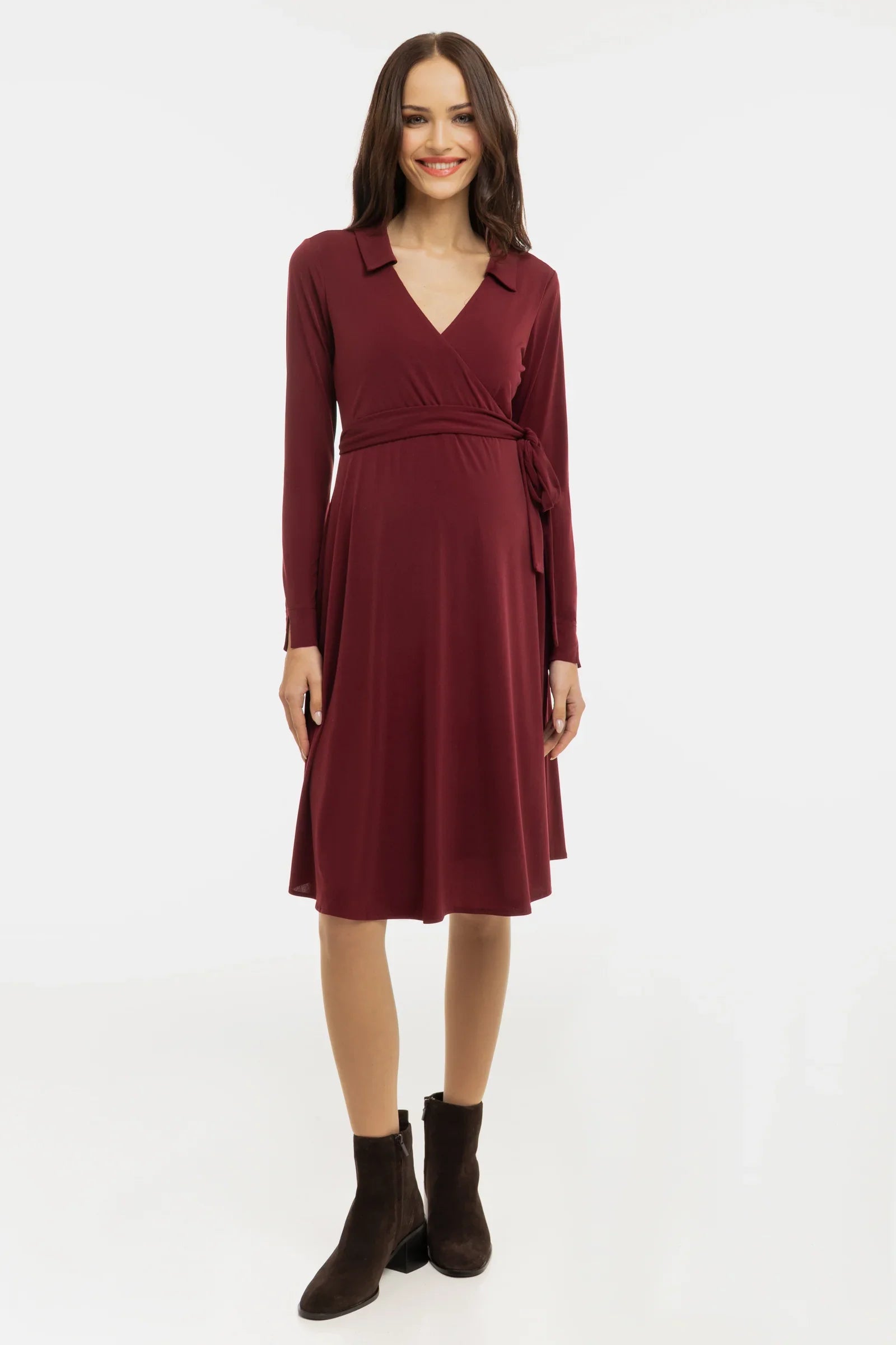 Αέρινο φόρεμα εγκυμοσύνης και θηλασμού με σταυρωτό μπροστινό μέρος – μπορντό