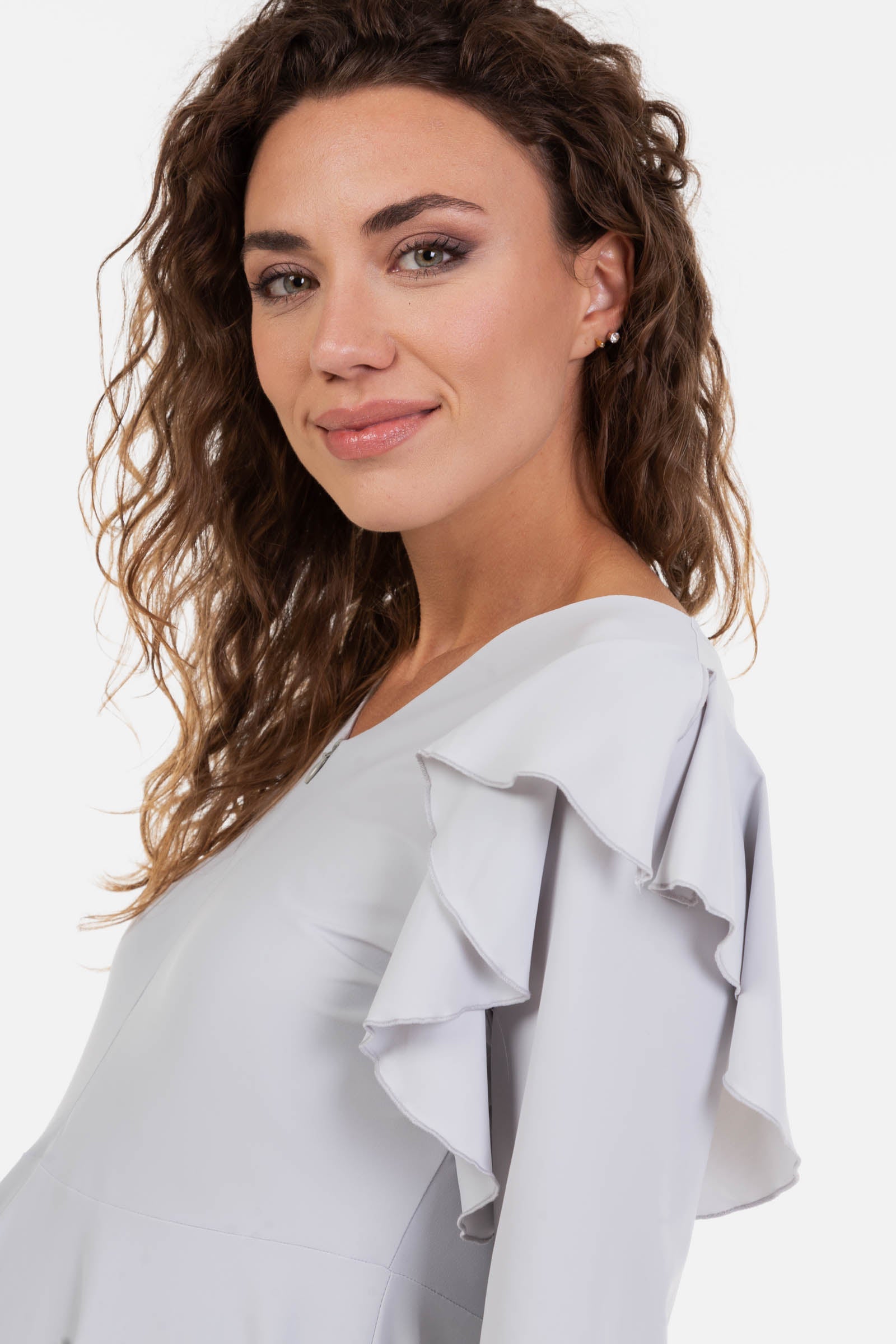 - Το φόρεμα έχει κατασκευαστεί από πολύ ελαστικό ύφασμα σε ανοιχτό γκρι