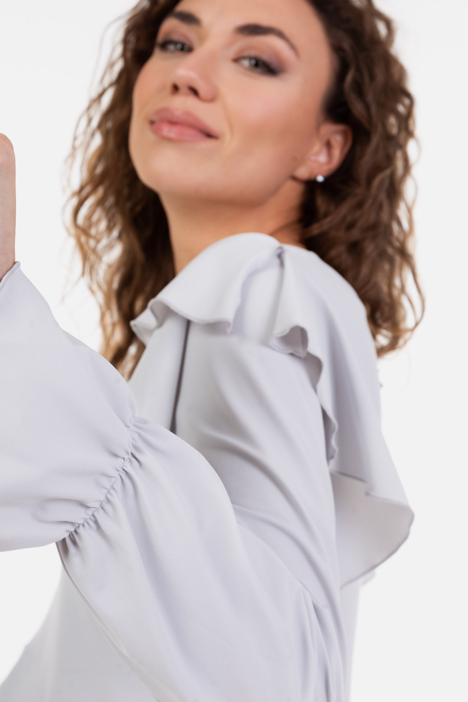 - Ογκώδες μανίκι με βολάν στον ώμο