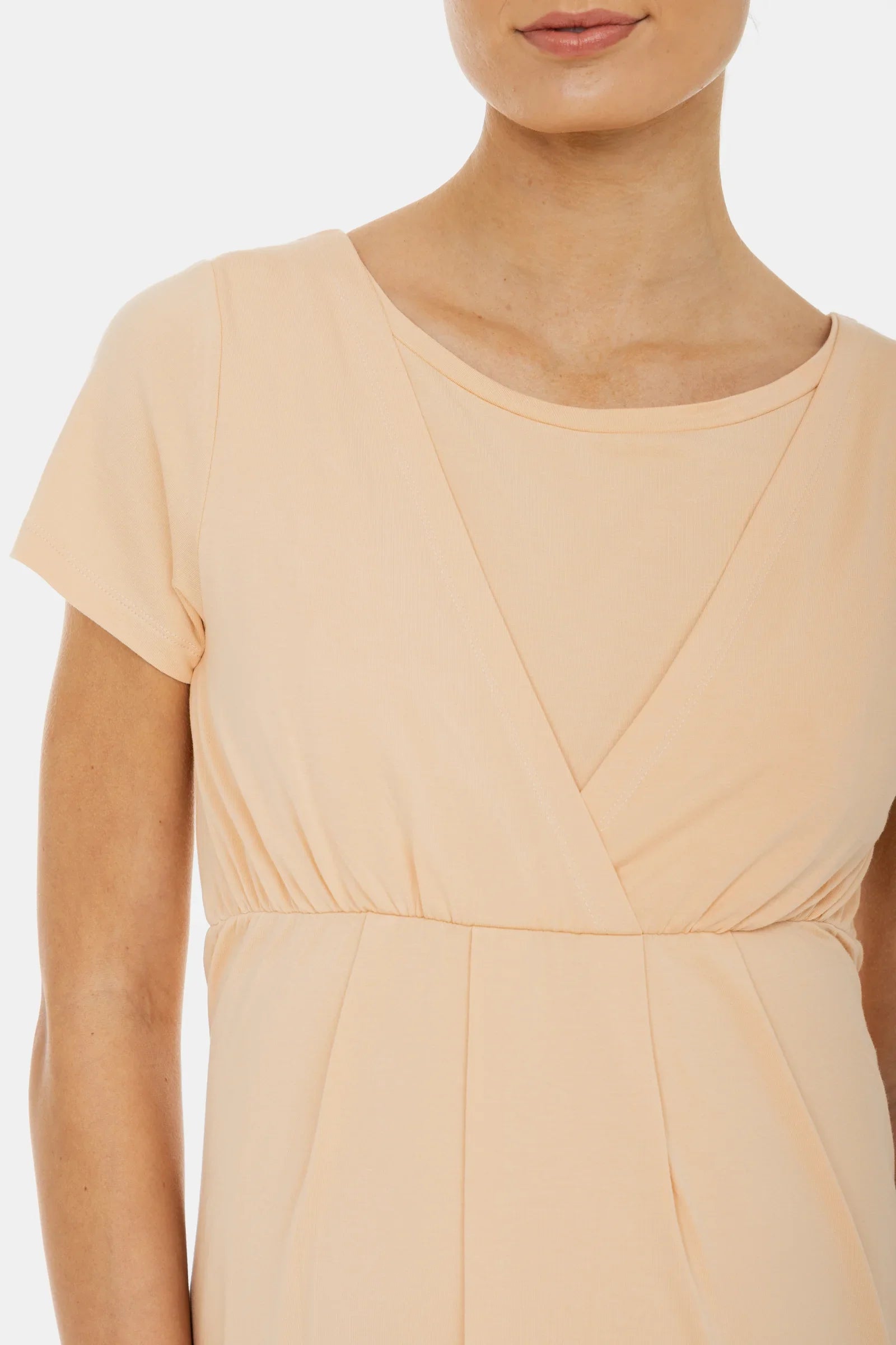 - Νυχτικό εγκυμοσύνης από απαλό ελαστικό ύφασμα βισκόζης σε ανοιχτό ροδακινί χρώμα