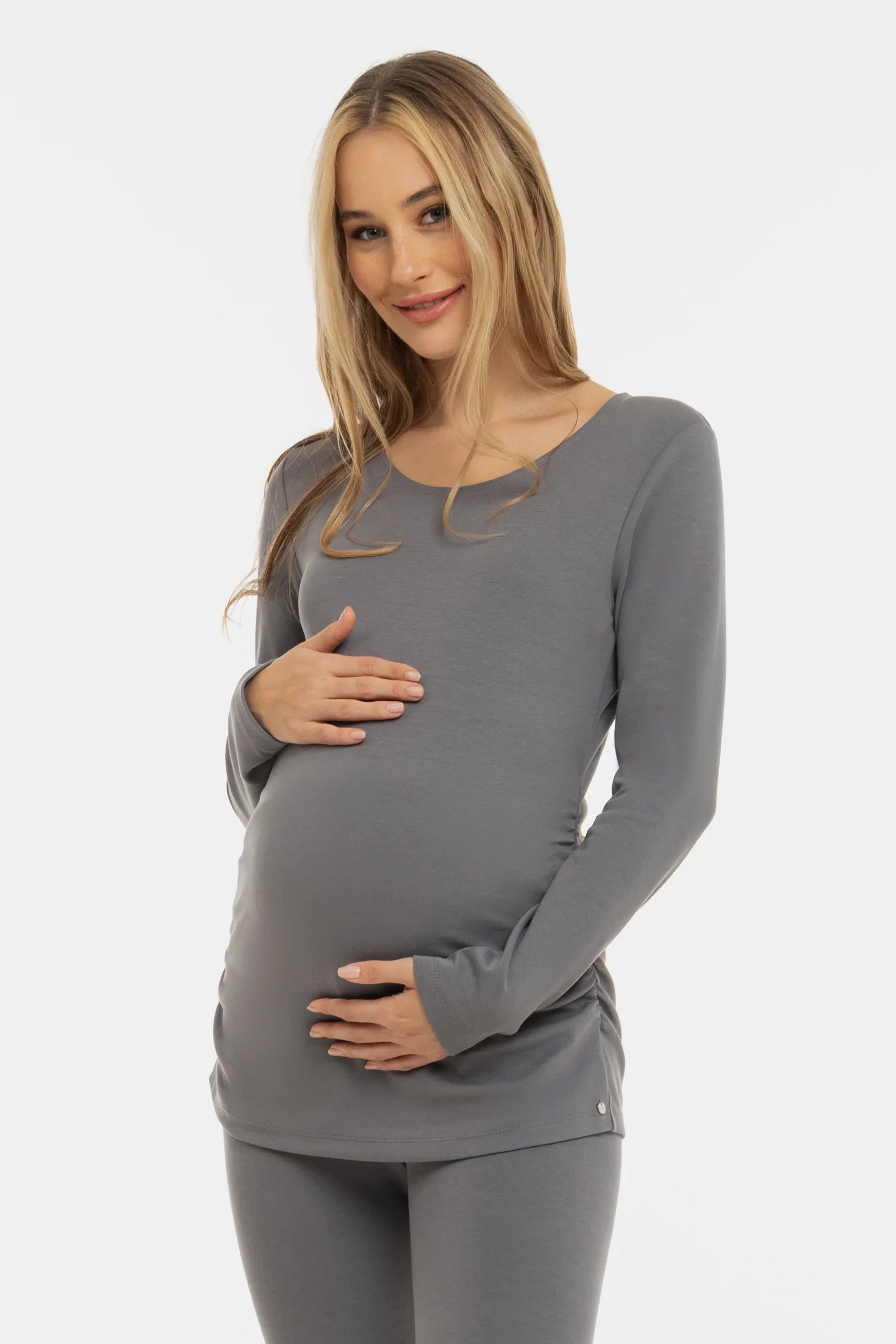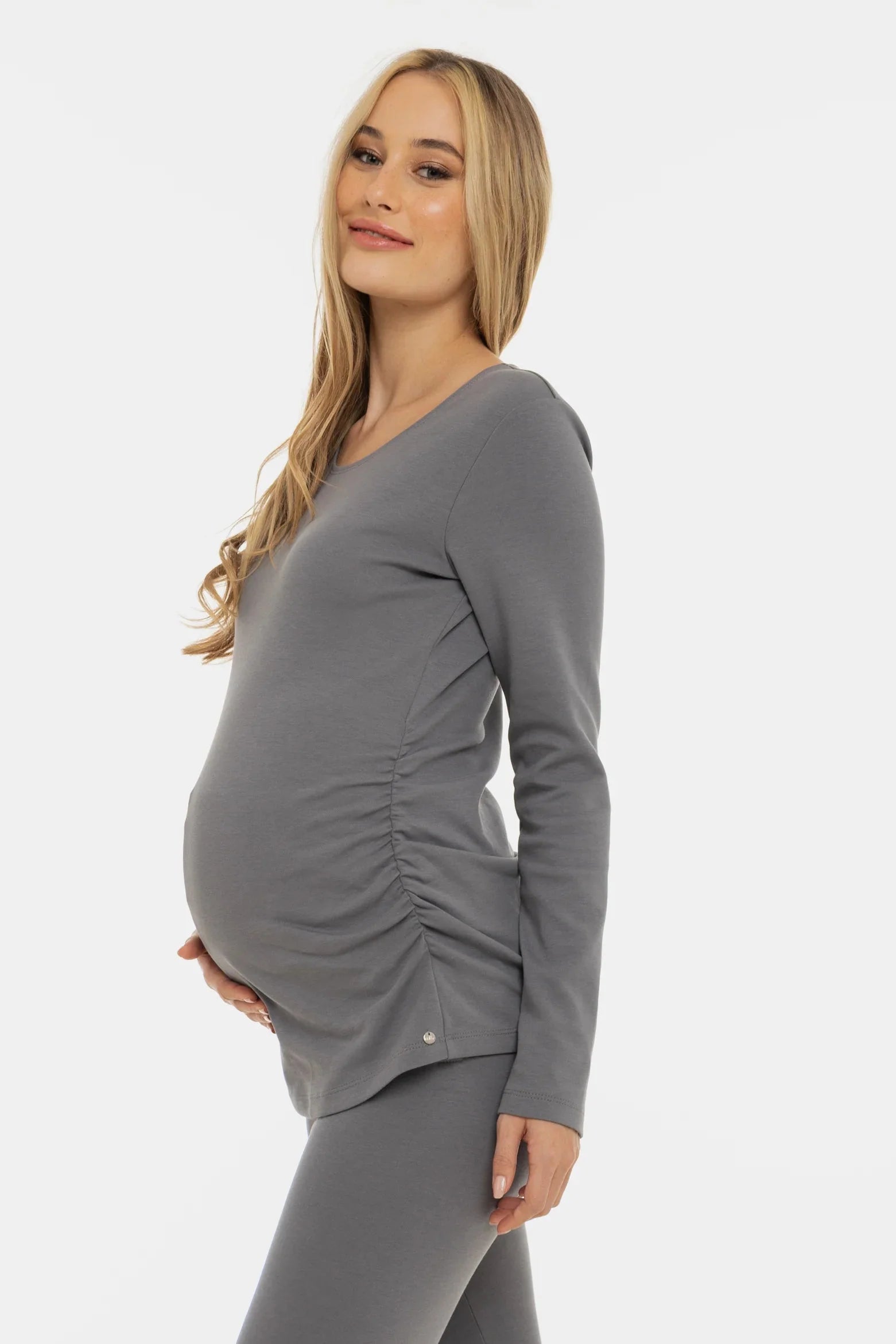 Γκρι βαμβακερή μπλούζα εγκυμοσύνης με σούρες