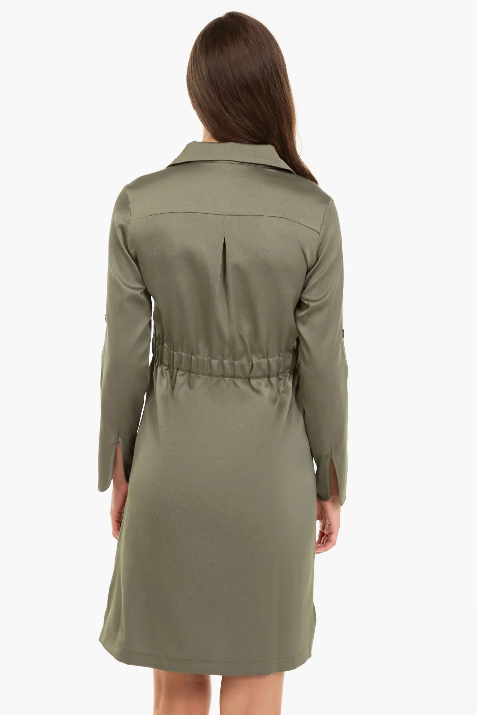 - Το φόρεμα είναι κατασκευασμένο από γυαλιστερό ύφασμα