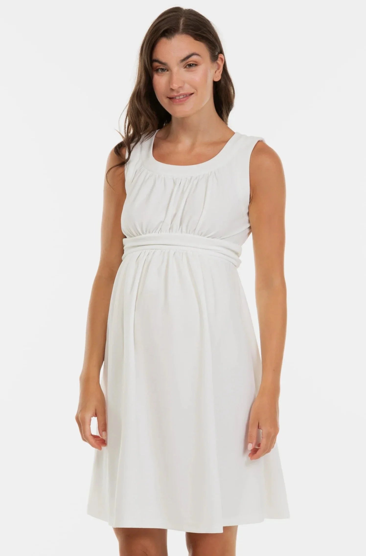 Εκρού κομψό φόρεμα εγκυμοσύνης με σούρες