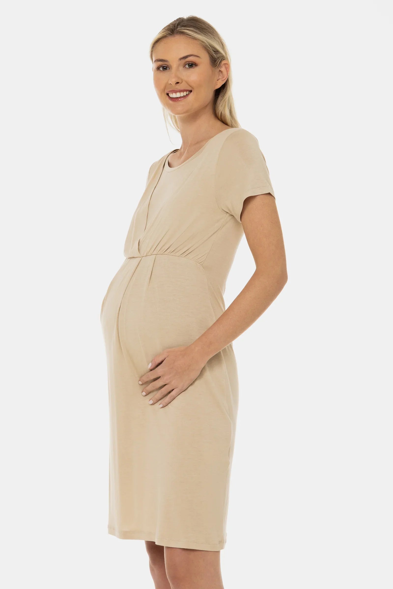 • Νυχτικό εγκυμοσύνης από μαλακό βισκόζ ύφασμα σε ανοιχτό μπεζ