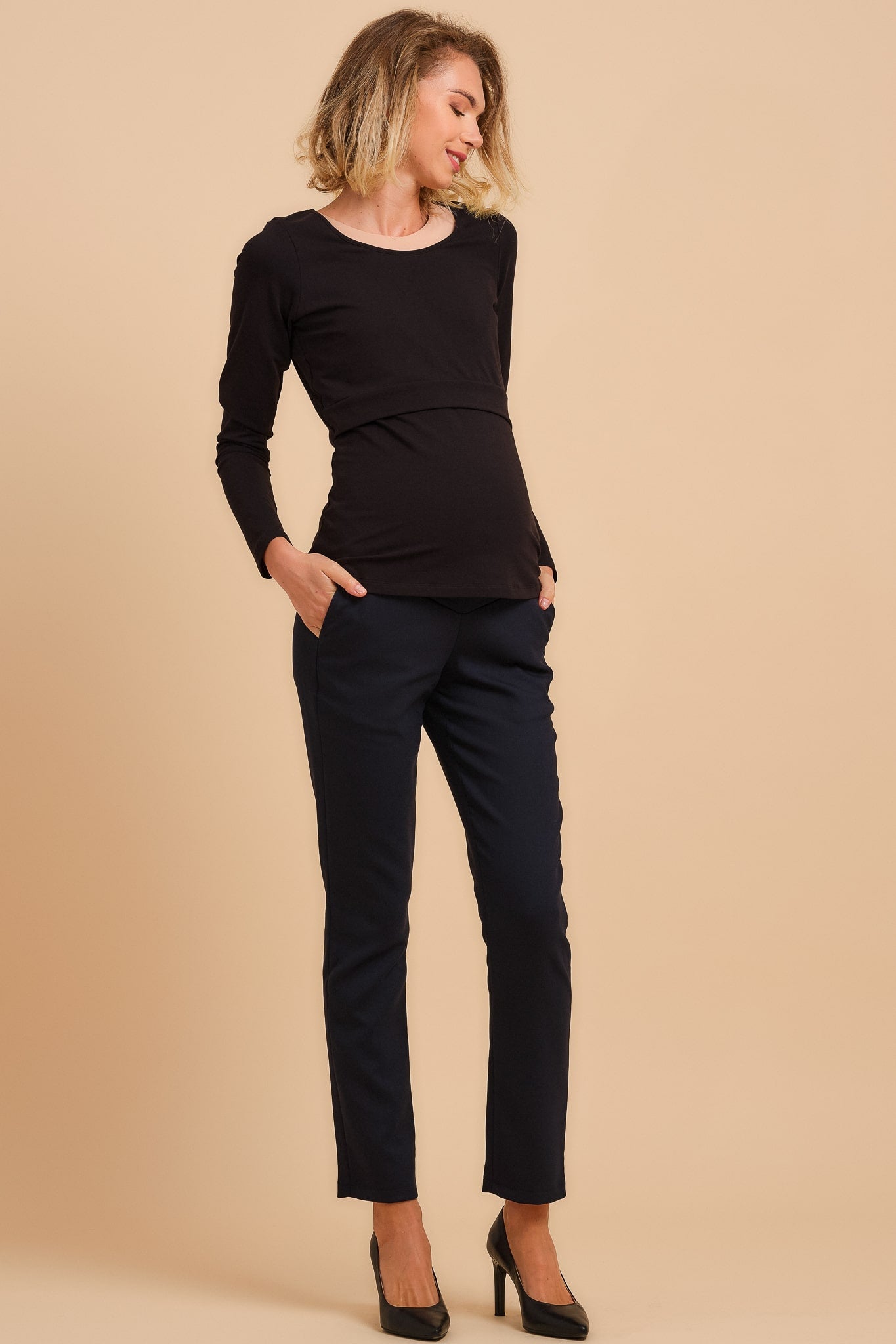 Σκούρο μπλε παντελόνι εγκυμοσύνης με βαμβακερή σύνθεση