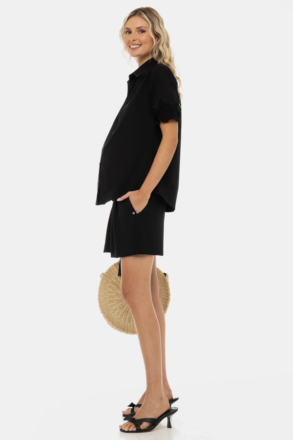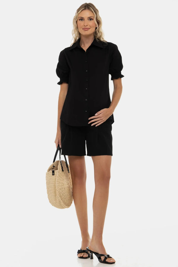Καλοκαιρινό βαμβακερό πουκάμισο εγκυμοσύνης και θηλασμού - μαύρη