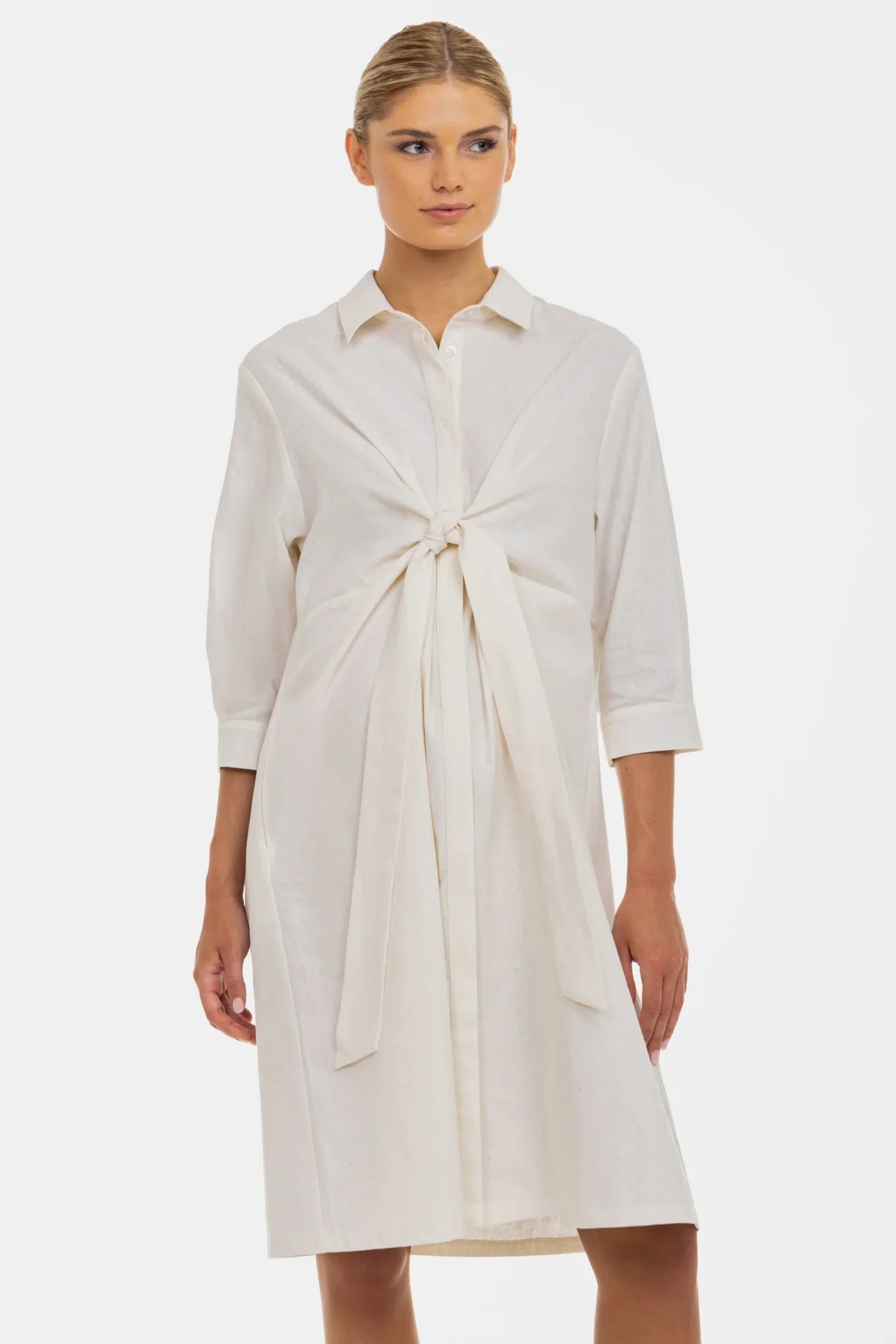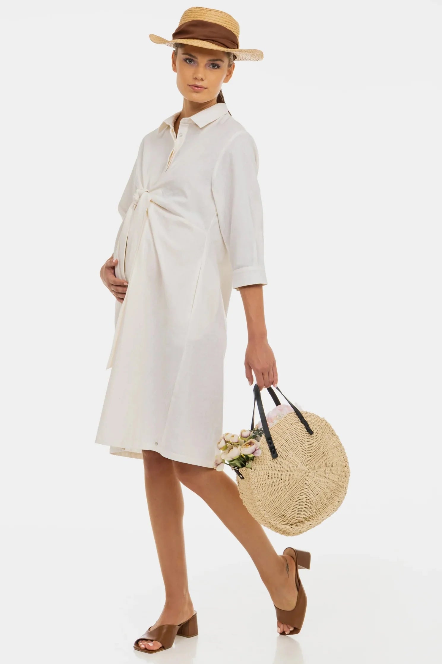 Σχεδιάσαμε αυτό το φόρεμα-πουκαμίσα εγκυμοσύνης από δροσερό μείγμα λινού και βαμβακιού – ιδανικό για τις ζεστές καλοκαιρινές μέρες!
