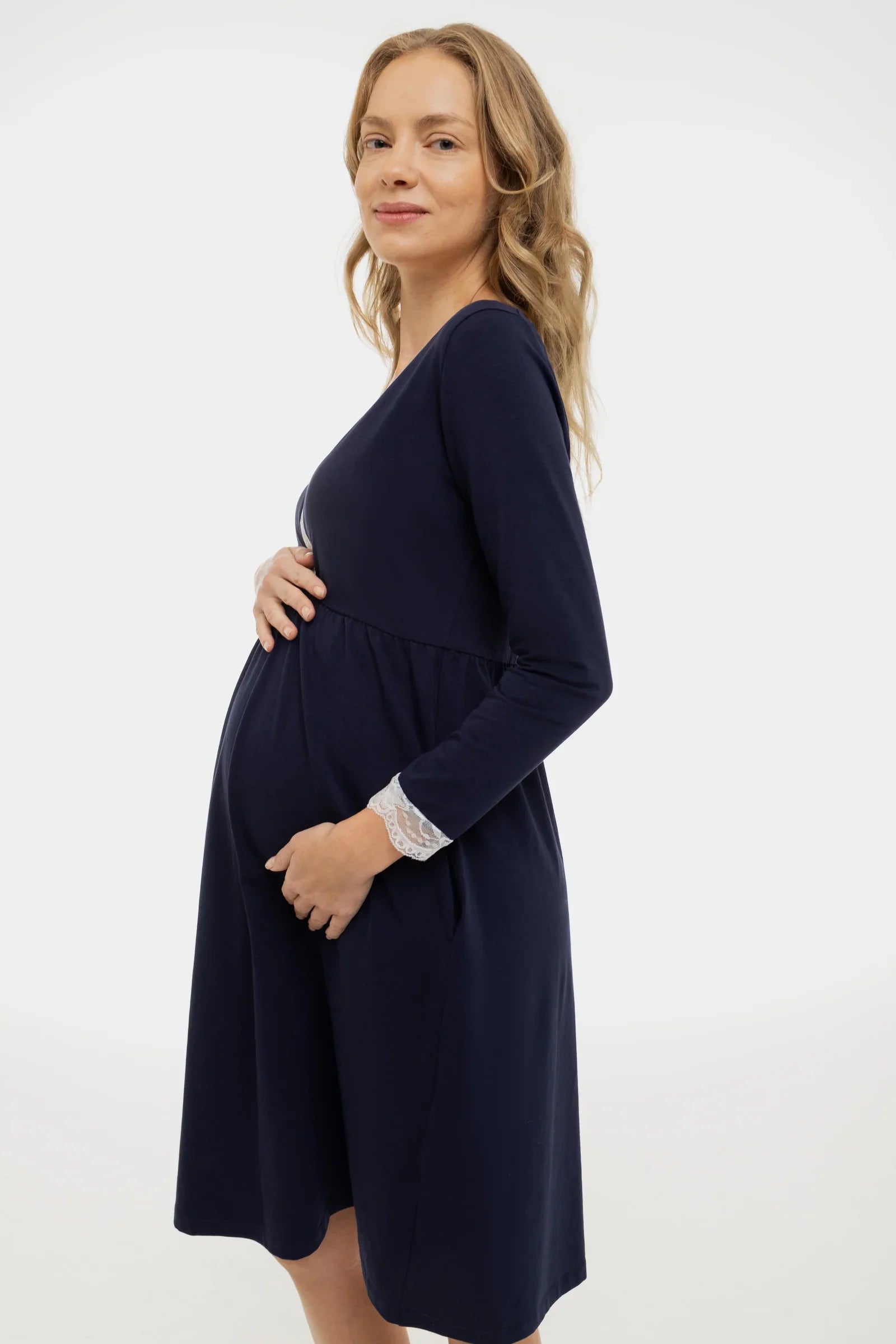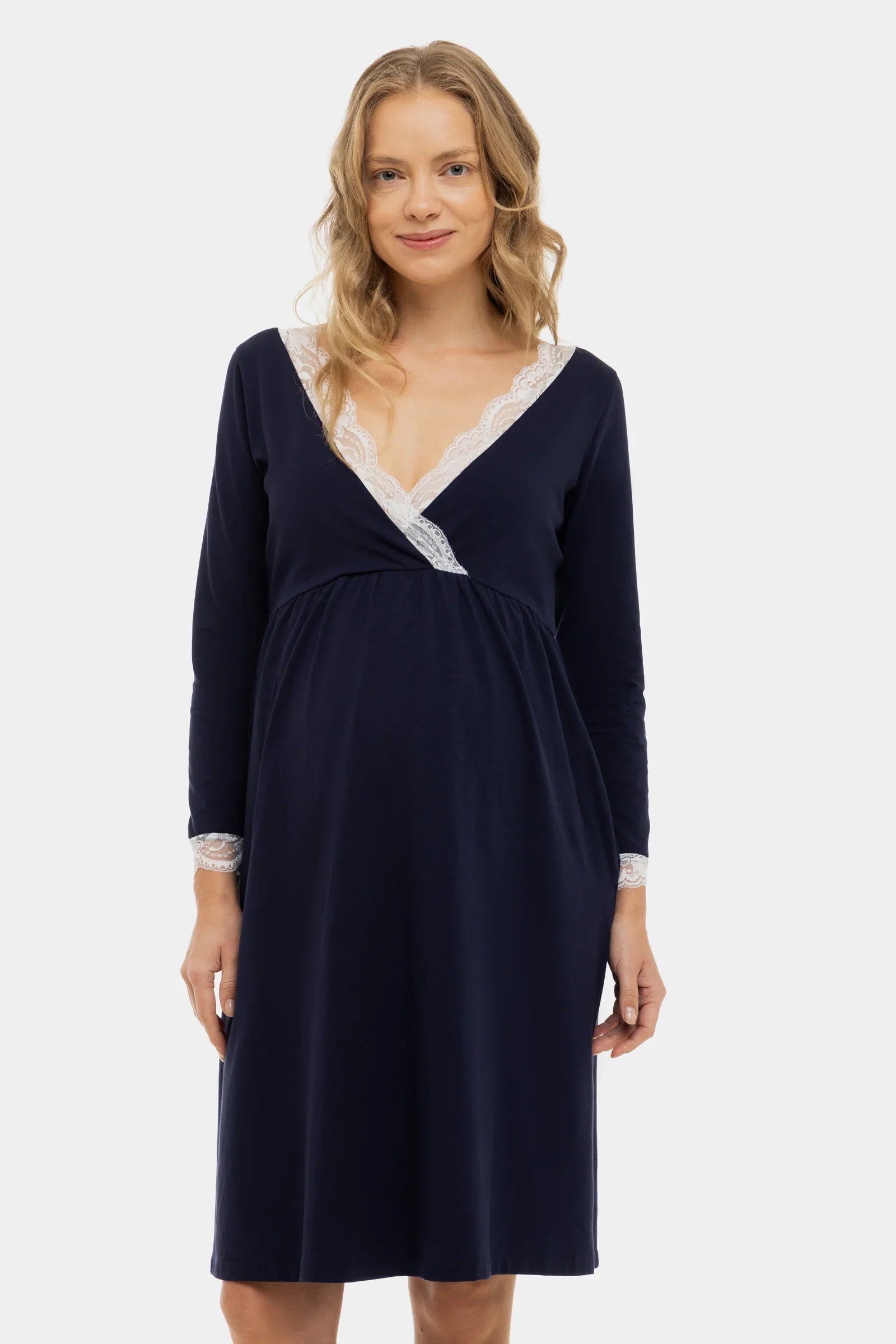 - Νυχτικό εγκυμοσύνης από απαλό βαμβακερό ζέρσεϊ σε σε σκούρο μπλε