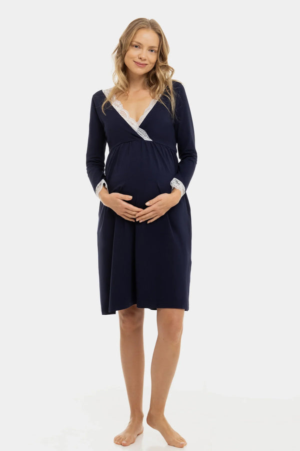 Βαμβακερό νυχτικό εγκυμοσύνης και θηλασμού με ⅞ μανίκια - σκούρο μπλε