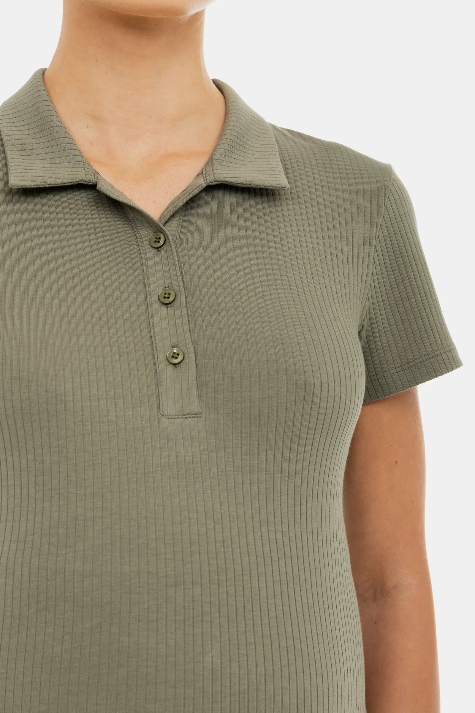 - Ελαστική βαμβακερή μπλούζα εγκυμοσύνης και θηλασμού σε χακί ριπ ύφανση