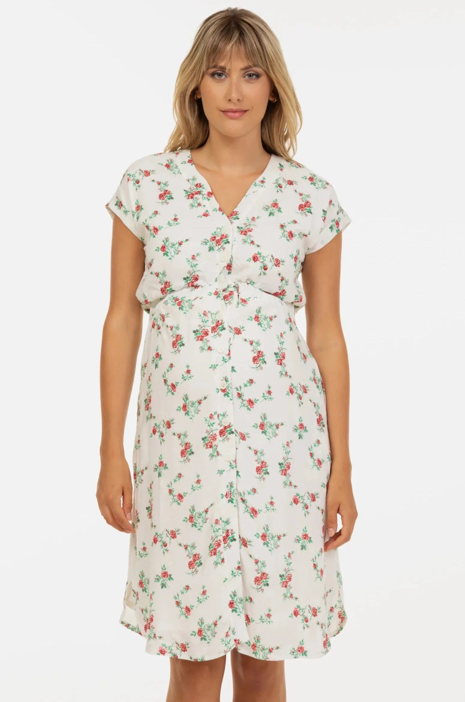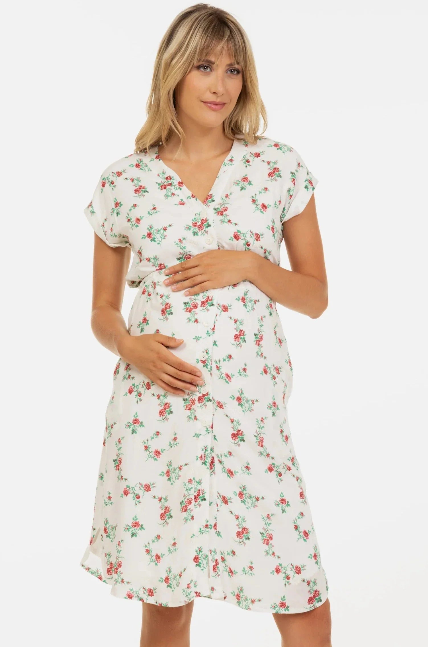 Βαμβακερό φόρεμα εγκυμοσύνης και θηλασμού με κέντημα – κόκκινα λουλούδια