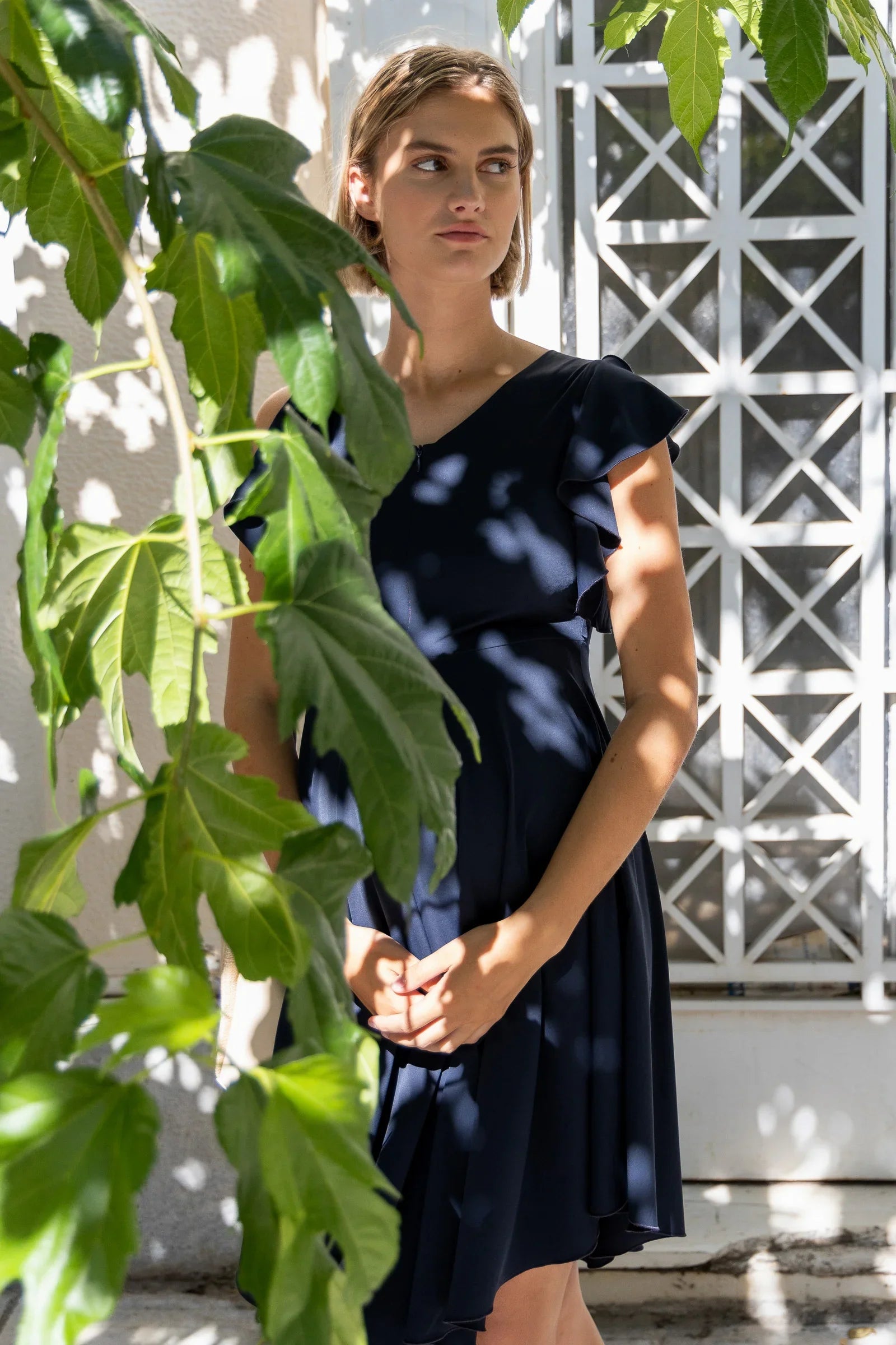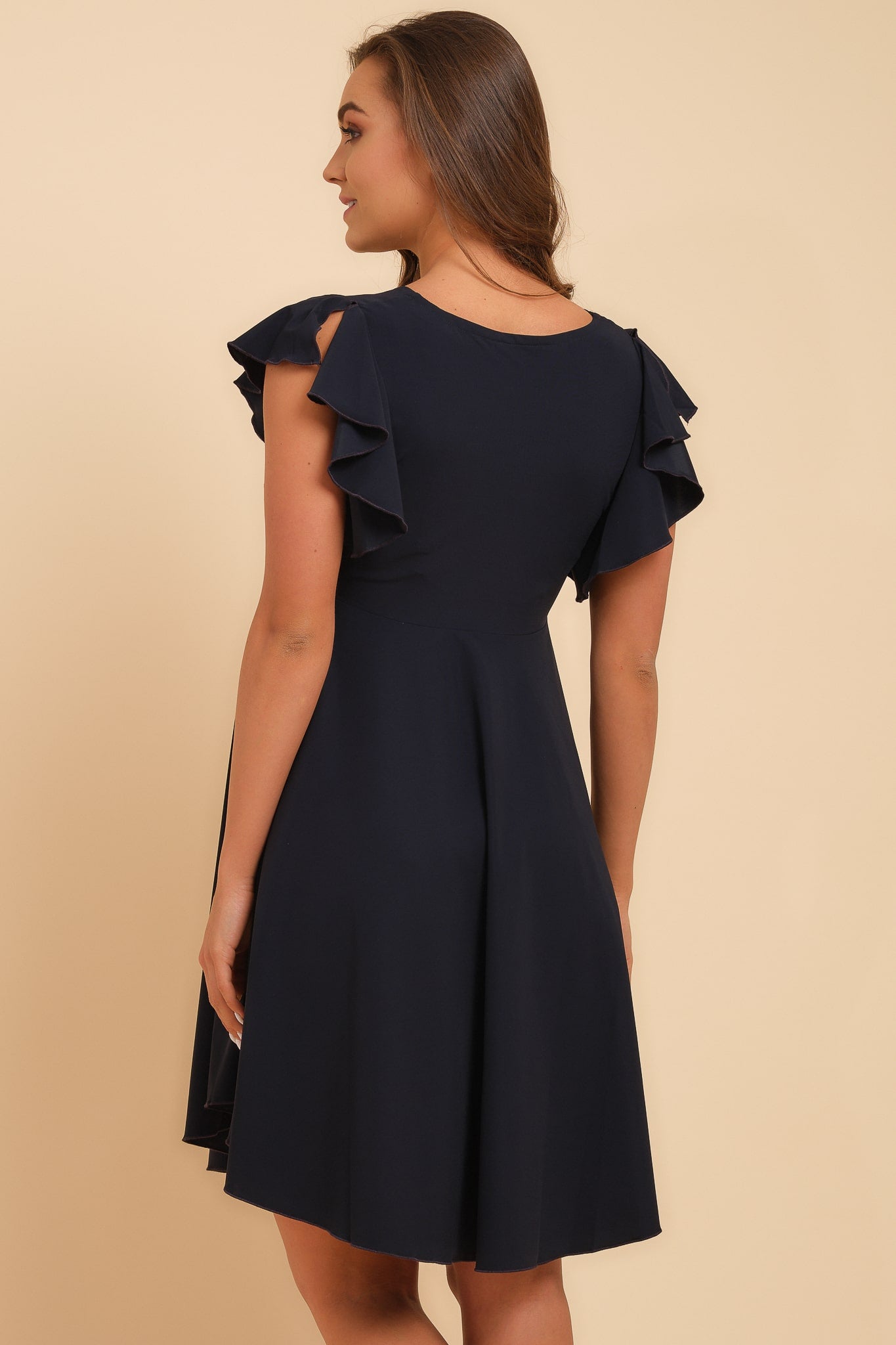 - Το φόρεμα έχει κατασκευαστεί από πολύ ελαστικό ύφασμα σε σκούρα μπλε απόχρωση
