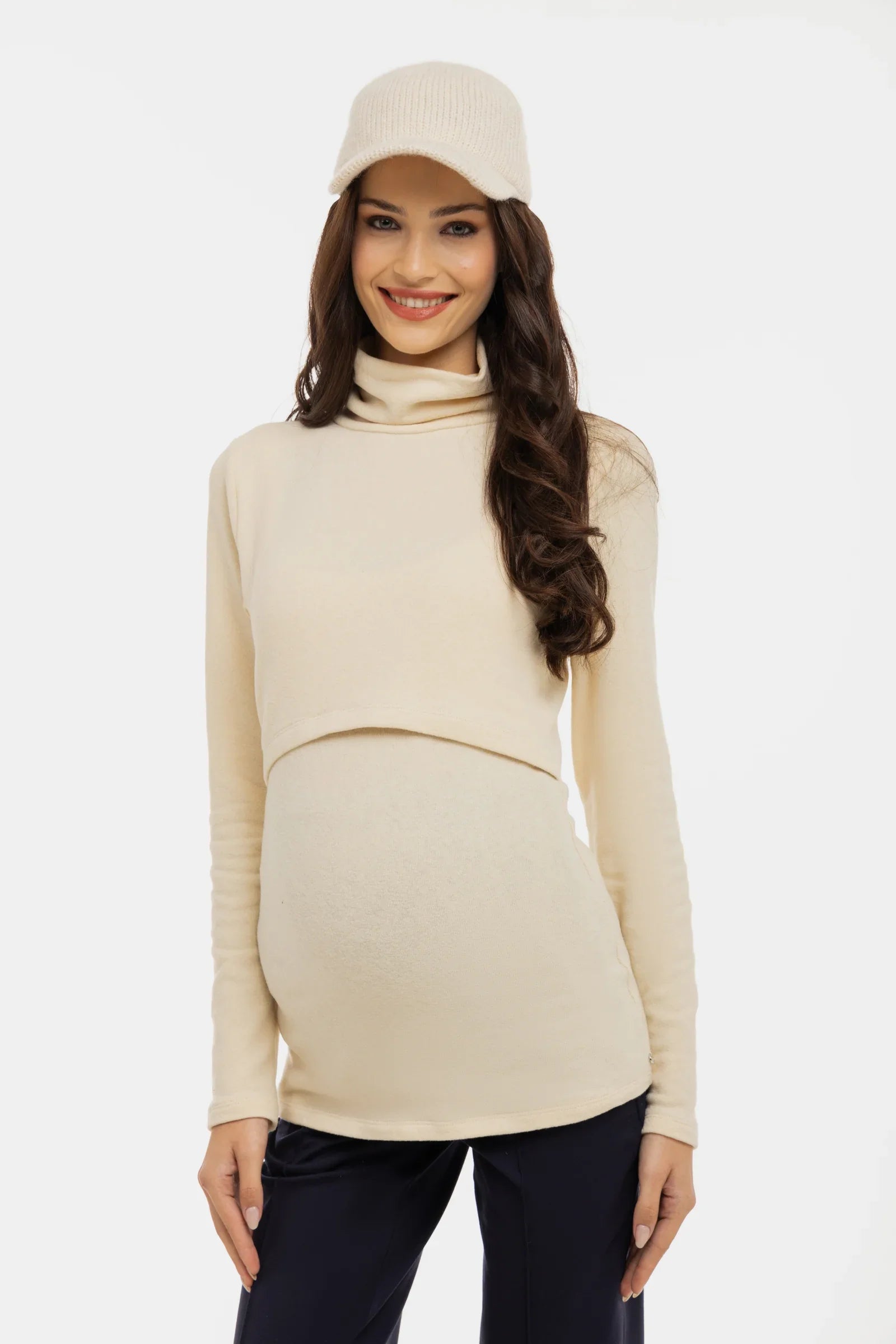 Βαμβακερή πουλόβερ εγκυμοσύνης και θηλασμού – εκρού