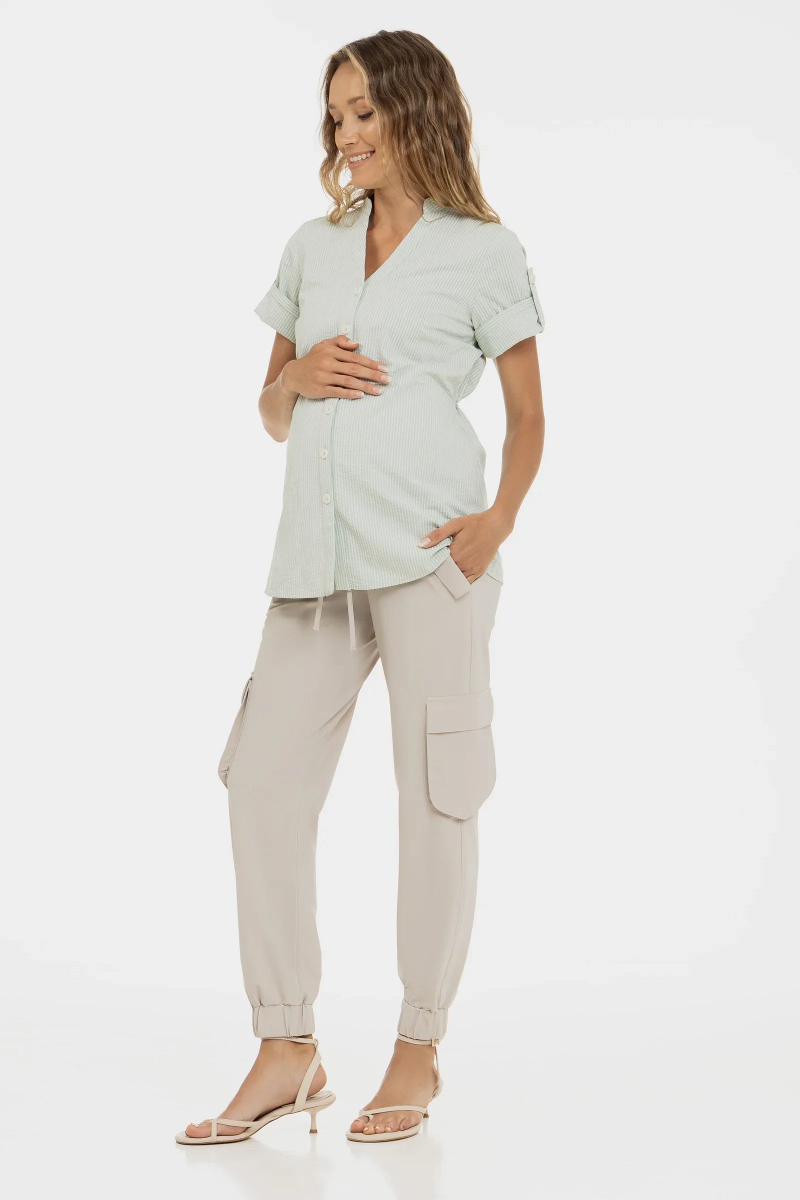 Βαμβακερό πουκάμισο εγκυμοσύνης και θηλασμού - ανοιχτό πράσινο