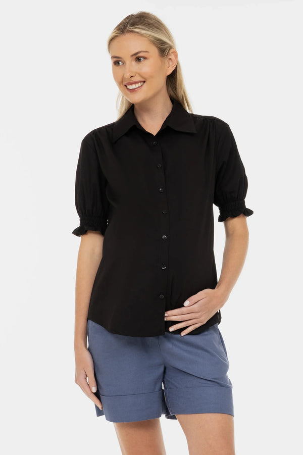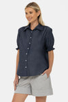 Βαμβακερό πουκάμισο εγκυμοσύνης και θηλασμού με φουσκωτά μανίκια