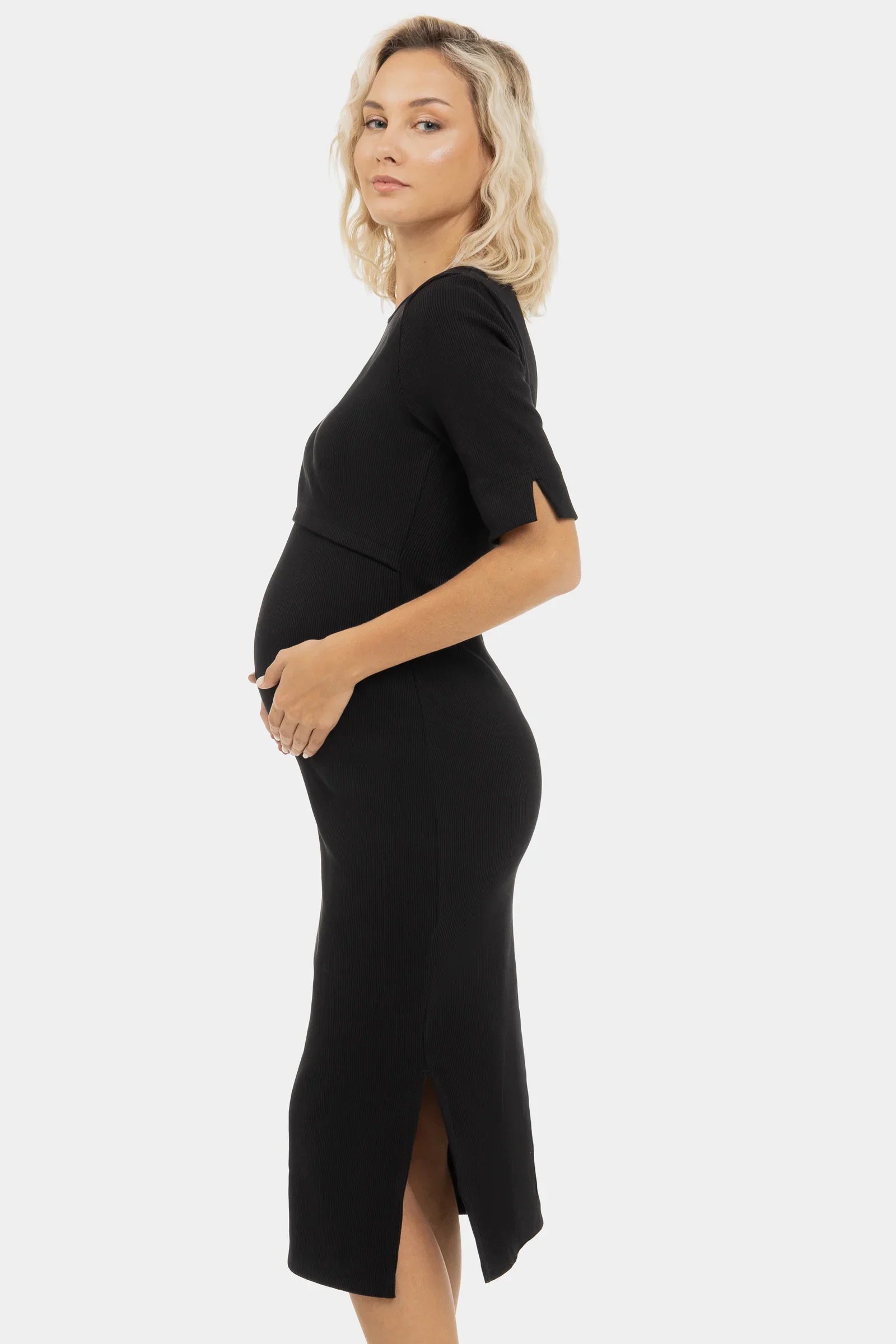 - Το φόρεμα εγκυμοσύνης είναι κατασκευασμένο από βαμβακερό ριπ ύφασμα σε μαύρο