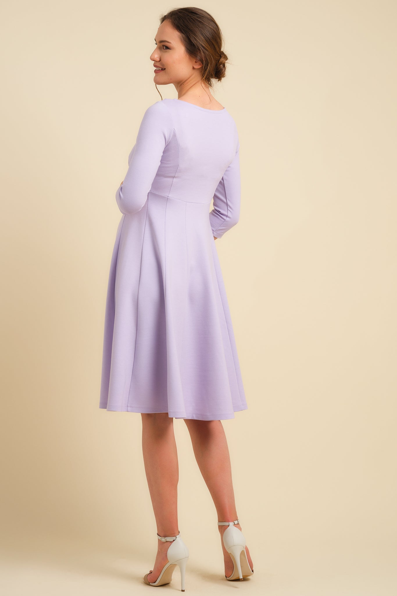 - Το φόρεμα είναι φτιαγμένο από κομψό ύφασμα με μαλακή υφή σε λιλά χρώμα